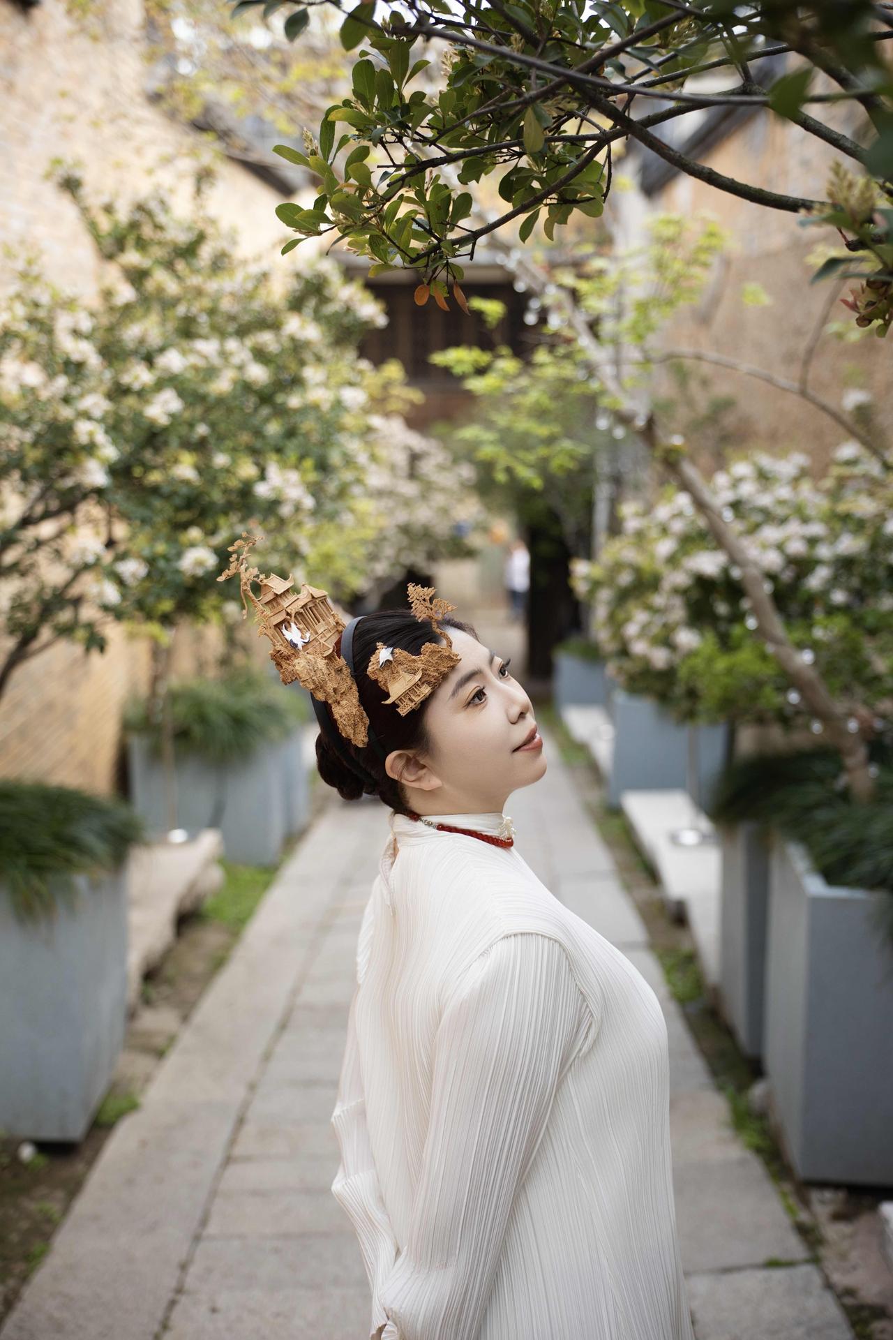 “寸木藏山海,孤影照清辉”。来榕城福州,终于拍上心心念的赵丽颖《上城士》同款,把非遗软木画戴在头上。 福州软木画是国家级非遗,与寿山石雕、脱胎漆器并称“榕城三绝”。匠人以刀代笔,以木作画,是用栓树皮雕刻将亭台楼阁、山水园林凝缩在方寸软木之间,展现出“无声的诗,立体的画”之美,每一幅都是独一无二的艺术品。 外景是自选的上下杭采峰别墅,百年侨厝。软木画发饰很软很贵,需要轻柔慢走免得磕碰。喜欢发饰上的亭台楼阁,飞檐斗拱、花鸟鱼虫,不得不说老祖宗的审美,是如此的精美而独特。 新中式传统or素雅纯色的服饰会比较适合,木质颜色和沉稳感的色系,跟古建的韵味与窗棂雕花庭院很搭。当非遗技艺遇上现代时尚,这份跨越时空的巧思,化身头上的灵动钗环,将这份方寸间的万千气象,戴在了头上。 指尖轻抚,薄如蝉翼的软木片在刻刀下流转生辉亭台楼阁错落有致,湖光山色层叠如诗。非遗不再只是展馆中的展品,而是走进人们的日常生活,成为触手可及的生活美学。赵丽颖这几年,简直就是行走的福建文旅大使,续泉州簪花后再次把非遗软木画戴在头上,我也是又解锁一座城,又一次跟着“上头”了。