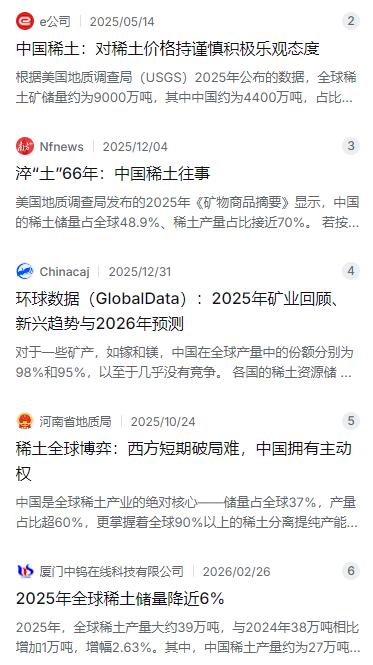 稀土成了中美关系里解不开的死结,中国如果不放开稀土出口,美国就能随时推翻任何之前签的协议,不断给中国找麻烦,可如果彻底开放稀土配额,美国拿到这些关键材料后,增强军备,再回头限制中国,局面也不会更好。 麻烦看官老爷们右上角点击一下“关注”,既方便您进行讨论和分享,又能给您带来不一样的参与感,感谢您的支持! 稀土这玩意儿,说它是现代工业的“味精”一点不夸张。添加量虽小,但离了它,从电动车电机到导弹制导系统全都转不起来。而在中美这两个大国之间,稀土早已不只是工业原料,更是一道怎么也绕不开的死结。 中国手里攥着全球稀土供应链的命脉。美国地质调查局2025年的数据显示,全球稀土储量大约9000万吨,中国占了4400万吨,接近一半。但中国真正的王牌不是储量,是精炼能力。全球90%以上的稀土分离提纯都在中国完成,美国虽然也产矿石,可大部分还得送到中国来加工。这就好比美国地里长出了粮食,但磨面、做饭还得靠中国的厨房。美国这些年一直在喊“去中国化”,但嘴上喊得凶,脚下走得慢。2026年的统计显示,美国有16种关键矿产完全依赖进口,54种矿产对外依存度超过50%。新建一个稀土矿山,从探矿到投产动辄五到十年,冶炼产能爬坡还得三到五年。 面对这种局面,中美两国其实都进退两难。 中国要是卡紧稀土出口,美国那边立马就能感受到切肤之痛。2026年初,中国对美稀土出口同比下降了22.5%,每笔出口都要政府逐条审批。欧洲市场的稀土价格直接飙到中国国内价格的六倍。更致命的是,美国的高端武器系统高度依赖中国的镝、铽等重稀土,这些都是导弹制导、雷达、隐形战机的核心材料。有消息说,美国手里的稀土战略库存只够撑两个月。这意味着,一旦供应链真断了,美国的高精尖武器生产可能面临停摆。从这个角度看,稀土确实是中国的战略筹码。 但卡得太紧也有风险。美国的反应可以用“不惜代价”来形容。特朗普政府推出的“金库计划”砸了120亿美元搞关键矿产战略储备。美国国防部还直接入股了本土最大稀土生产商MP Materials,投了4亿美元拿了15%的股份。与此同时,美国正在拉拢日本、韩国、澳大利亚、英国等盟友,试图打造一条“去中国化”的稀土供应链。2026年初,美国稀土开发商REalloys就跟日本JOGMEC签了协议,日本要把稀土分离和磁体制造技术转移到美国工厂。如果中国长期收紧出口,反而会加速美国及其盟友重建供应链的步伐。行业里普遍的看法是,完全独立于中国至少需要十年,但这个倒计时一旦启动,中国手里的这张牌迟早会失效。 那要是彻底放开稀土配额呢? 美国拿到稳定供应后,第一件事就是增强军备和产业升级。2025年,MP Materials的氧化镨钕产量翻了一倍,达到2599吨,还在德州建了自己的磁体工厂,当年就产出了第一批钕铁硼磁体。按照计划,2026年中期他们的镝和铽分离设施也要投产。可以说,美国正在把中国的稀土变成自己的武器。更要命的是,美国手里还有关税和贸易规则这张牌。2025年底,美国贸易代表办公室宣布对部分中国半导体产品加征301关税,虽然目前税率为0%,但到2027年6月就要开始提高了。这摆明了是美国先拿中国的稀土把军备和产业搞起来,再用关税和技术标准反过来限制中国。 这么一看,中国确实是左右为难——卡了不行,放开更不行。 其实这个局面的根源在于一个更深层的问题:中美之间的互信已经跌到了冰点。稀土之所以成了死结,不是因为资源本身多稀缺,而是因为双方都认定对方会在拿到好处之后翻脸。美国怕中国哪天突然断供,所以拼命搞替代供应链;中国怕美国拿到稀土后反过来用技术标准卡自己,所以不敢轻易松手。这种猜忌和自我实现的预言,让稀土问题越缠越紧。 2025年中美之间进行了五轮经贸磋商,从日内瓦、伦敦、斯德哥尔摩一路谈到马德里、吉隆坡。10月底两国元首在韩国釜山会晤后,总算在贸易摩擦上达成了一些临时缓和——美国暂停了对中国海事和造船业的301措施,中国也相应暂停了部分反制措施。随后在11月初,中国甚至暂停了一年前刚推出的稀土出口管制措施。但谁也说不准这个暂停能持续多久。双方都清楚,稀土这张牌只是暂时收起来,随时可能再打出来。 跳出这个两难的死结,中国真正该做的,恐怕不是纠结于“卡还是不卡”,而是从根本上改变博弈的性质。 中国的稀土优势不能只停留在出口矿石和初级产品上。真正的高附加值在深加工和下游应用端。中国应该加大对稀土高端材料、永磁体、催化剂等领域的研发和产业化投入,把“卖资源”变成“卖技术”“卖产品”。这样一来,即便美国重建了供应链,中国在高端市场仍然占据不可替代的位置。
