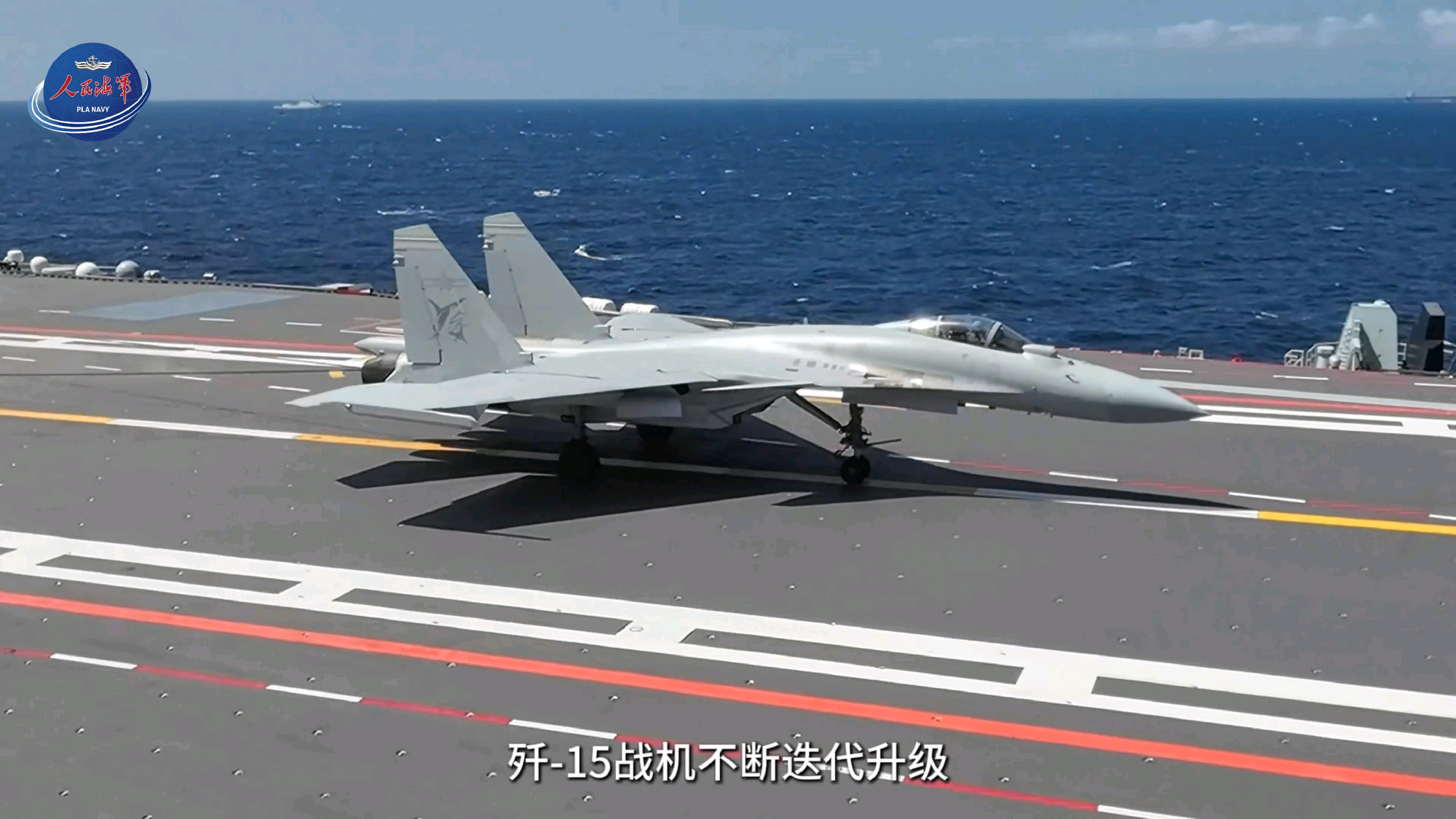 福建舰,阻拦着舰的16号歼-15T