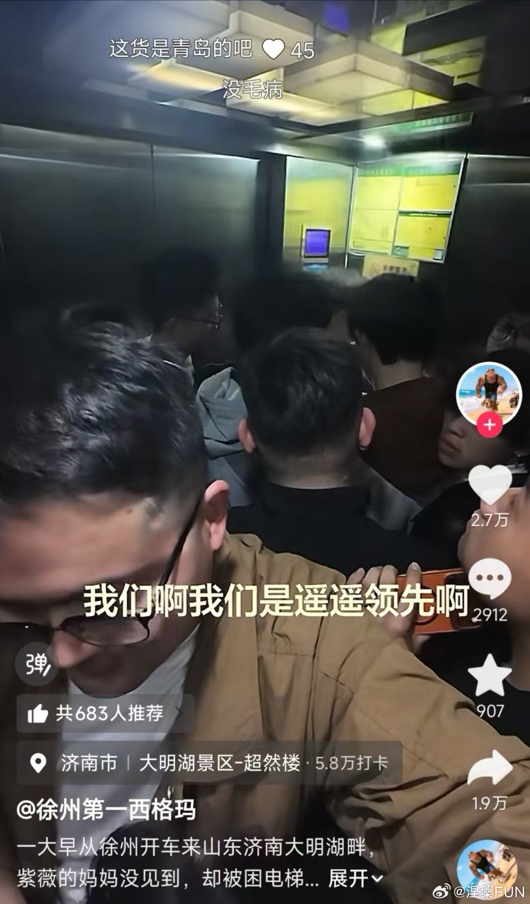 一群人困在景区电梯里了,很多人没信号,这个人用遥遥领先打出了电话!关键时刻,还是