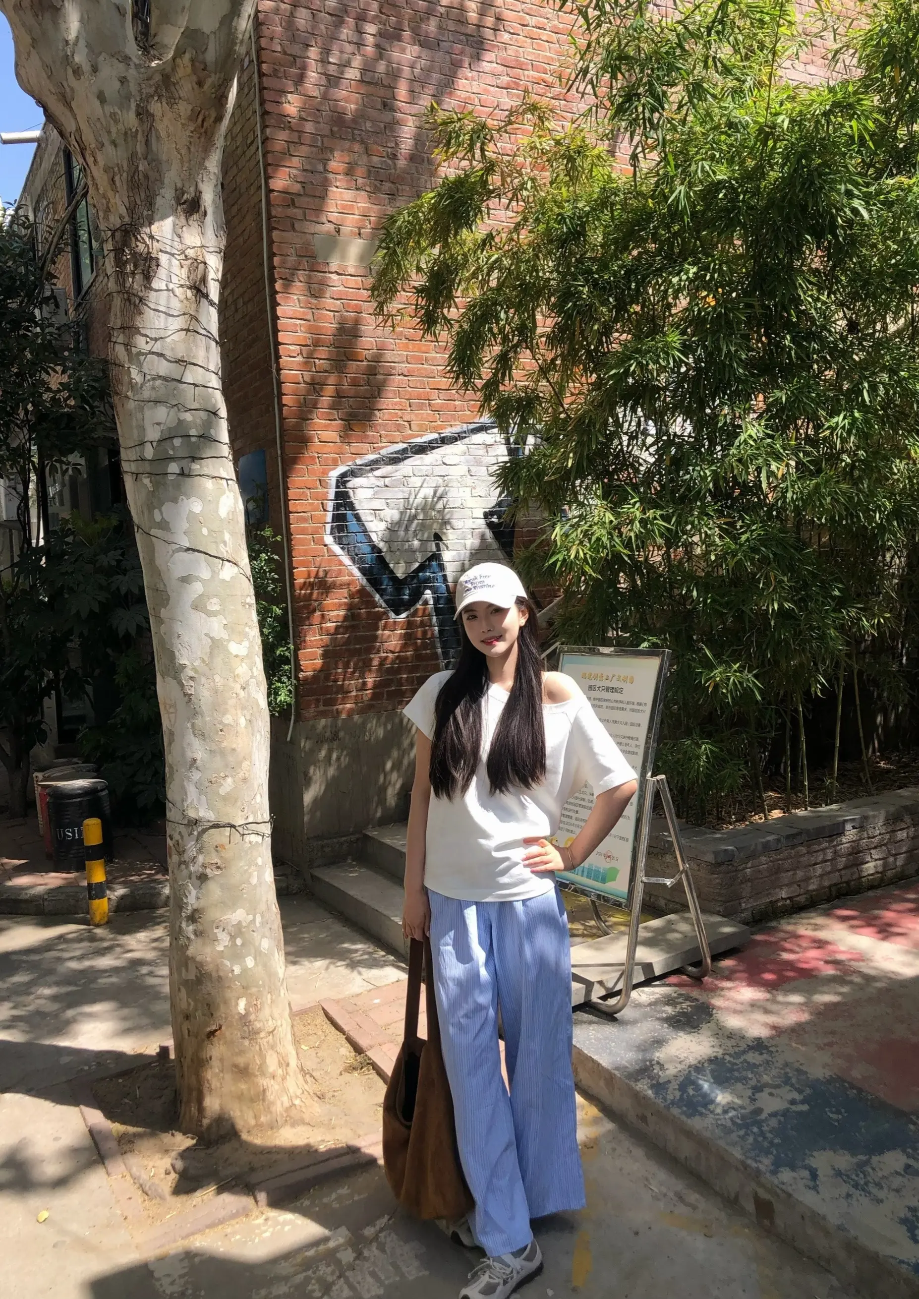 简约而不简单,确实是女神范儿的真谛,一条灰白牛仔裤搭配白色内T!时尚女性气质气