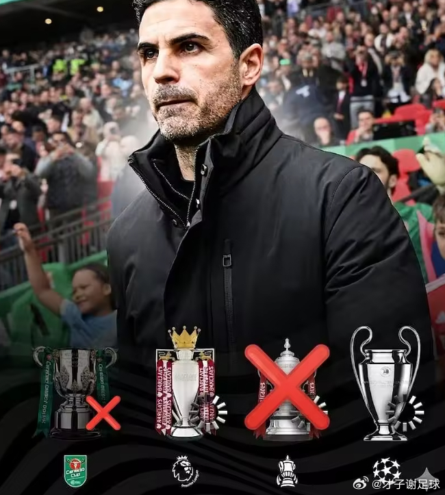 3月23日,英联杯决赛,阿森纳0-2不敌曼城,率先丢掉一冠。