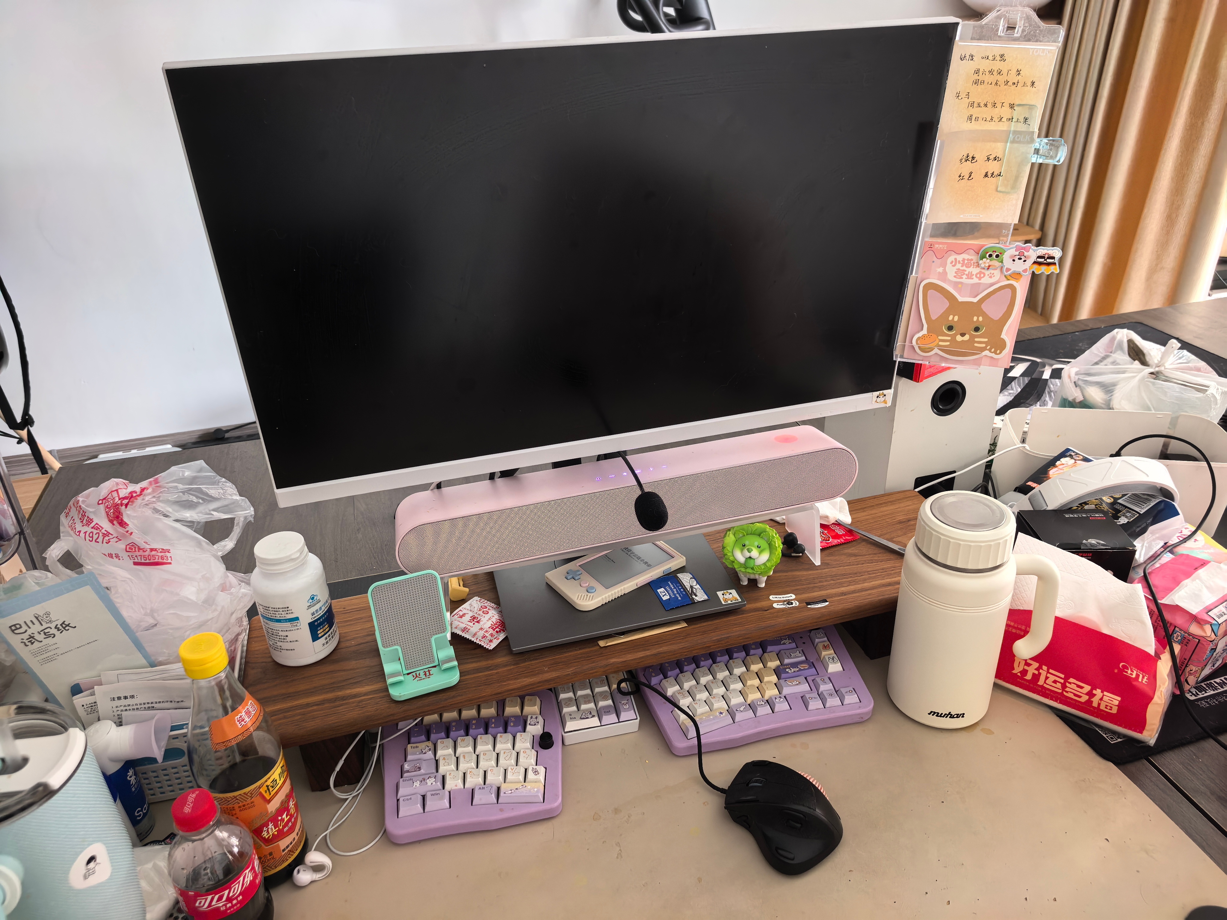 鸽鸽胡桃木HUB支架+面包音响+幻翼屏。面包二代和HUB支架真乃我们鸽鸽外设的一代神器啊