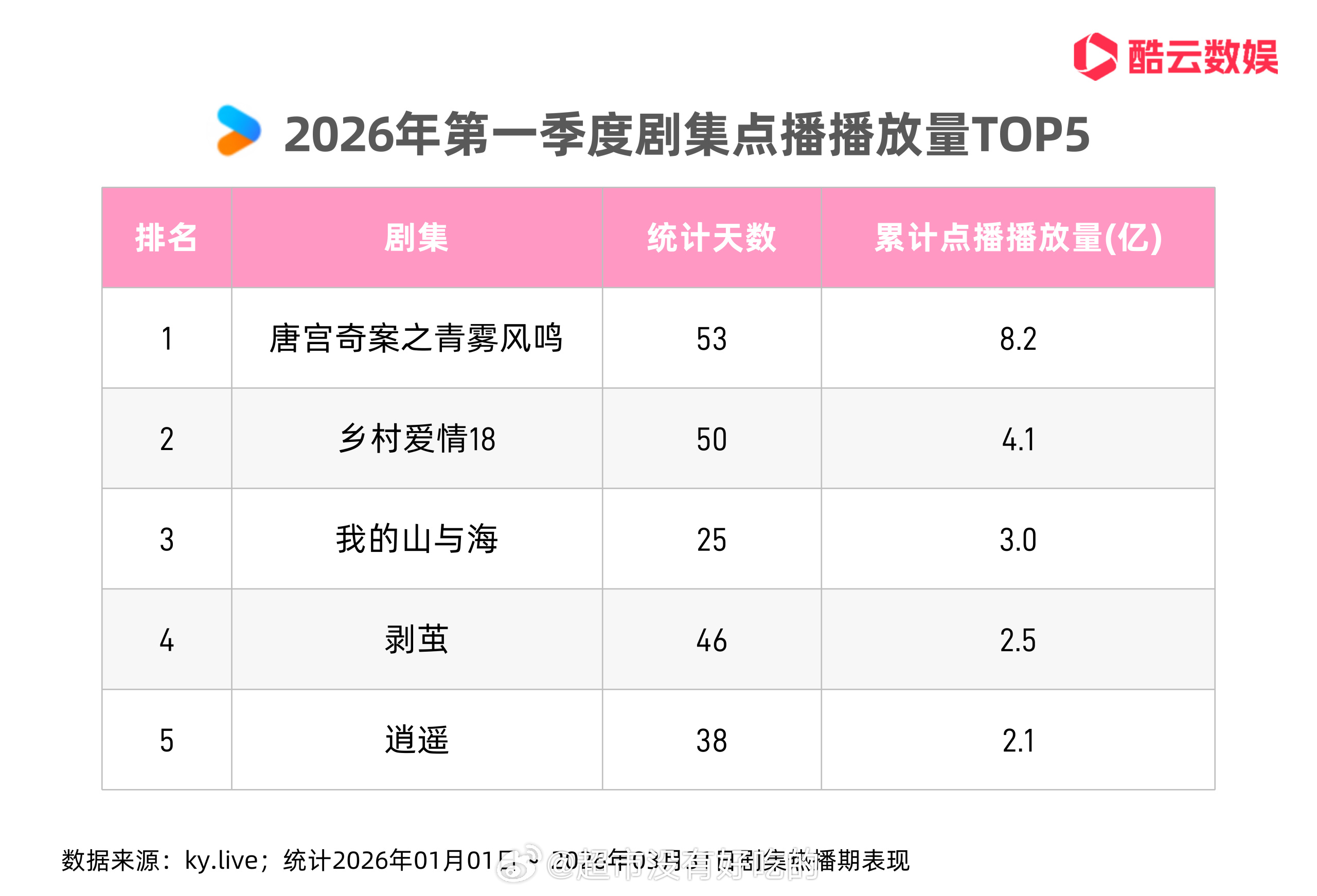 2026年优酷第一季度剧集点播播放量排行白鹿《唐宫奇案之青雾风鸣》优酷Q1季冠一番扛剧花的伟大,恭喜白鹿,优秀白鹿白鹿