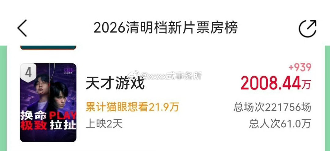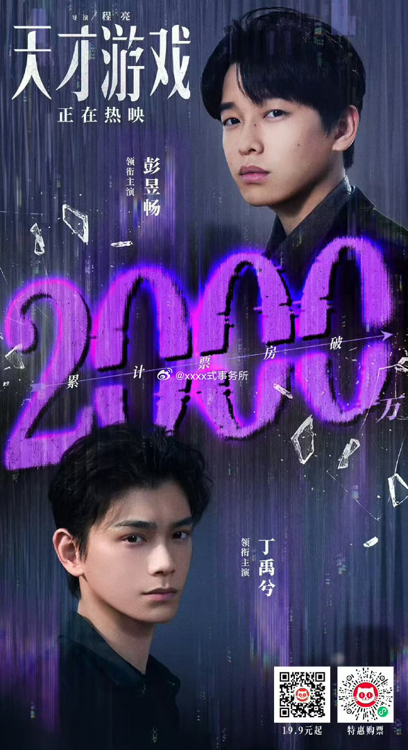 丁禹兮电影《天才游戏》总票房破2000万 ,票房号召力有