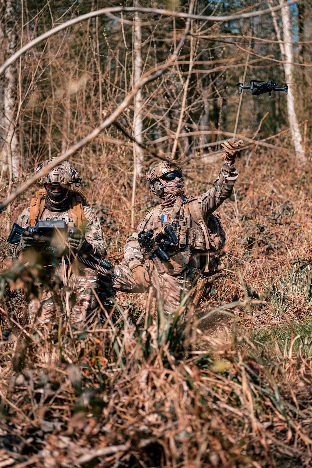 在法国拉库尔蒂纳,欧洲旅战备司令部美洲虎部队率先亮相在由1REC第2中队在半山区环境中进行的实验性野外演习中。 这些演练区域让海马体战队得以测试一种能够应对现代战争挑战的模式:无人机、地面无人车、摩托车……协同。