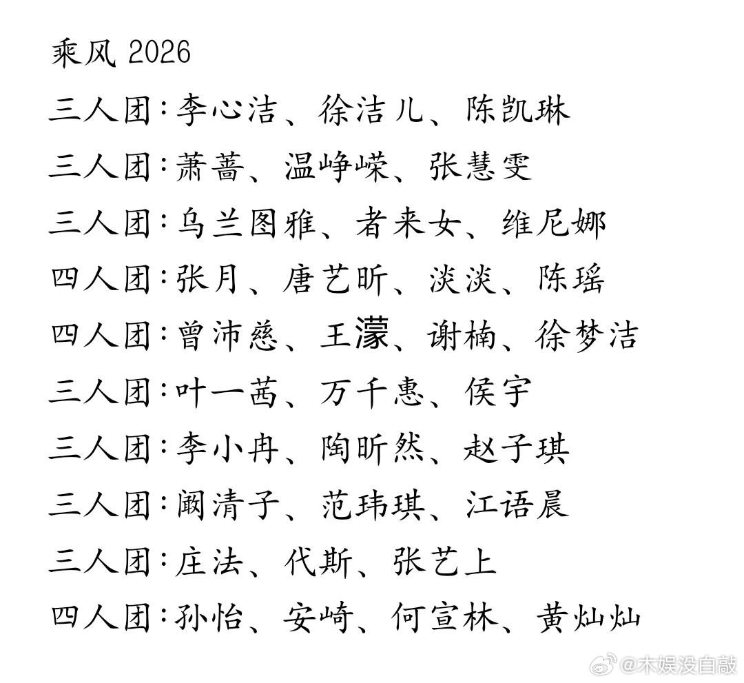 乘风2026组队+歌单yy 这个阵容以及主队选曲,你猜哪个队会赢和好看呢?