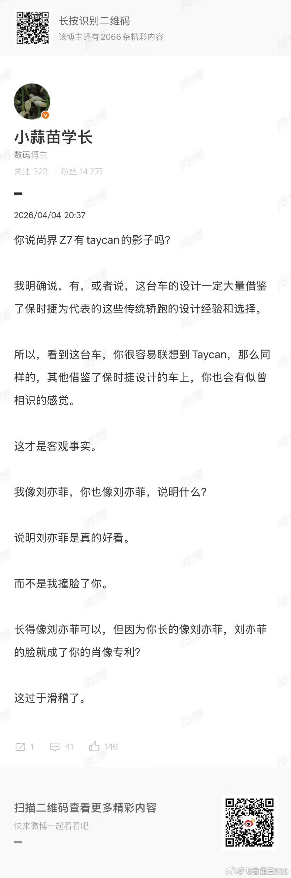 我也没说小米姿态像Taycan,尚界Z7就不能像了