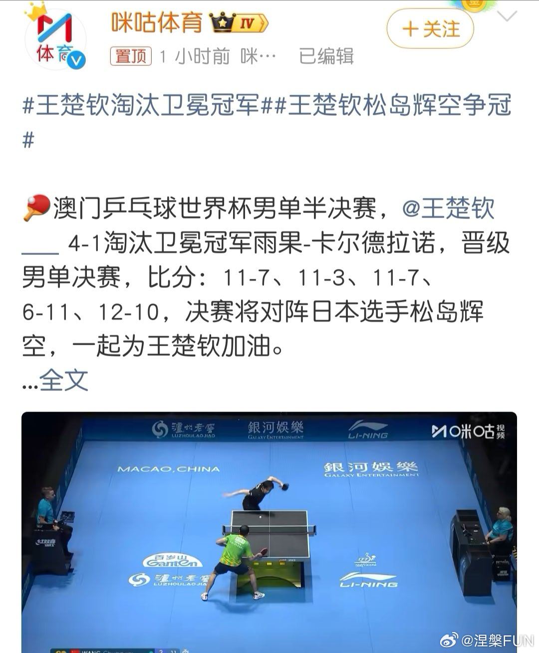 王楚钦淘汰卫冕冠军是这次世界杯中国男子的最后希望,希望最后能赢得冠军!看好你哟!