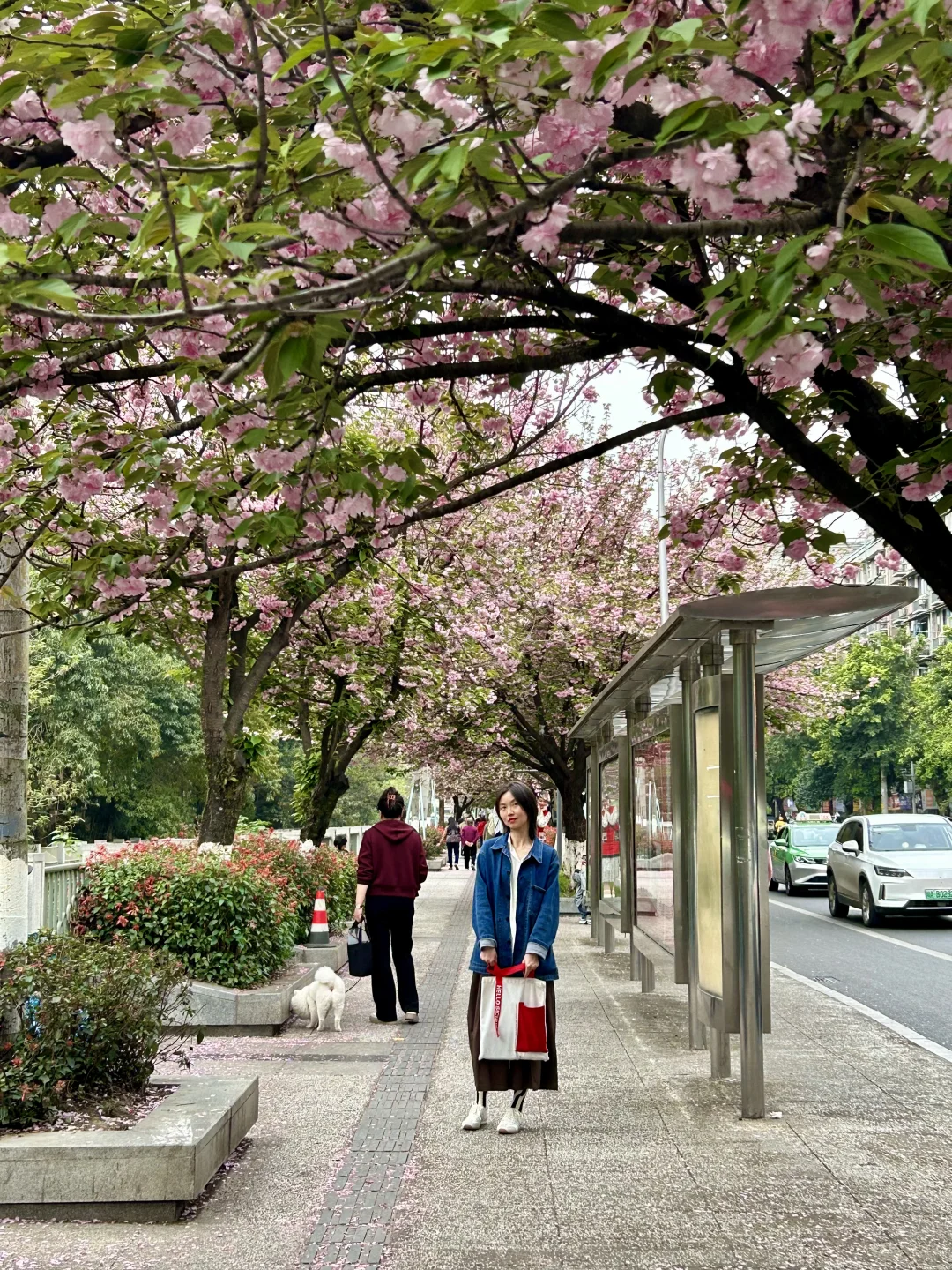 双元街上的樱花都开爆了,地上全是花瓣,树上也开满了花,假期可以去逛逛哦[种草R]