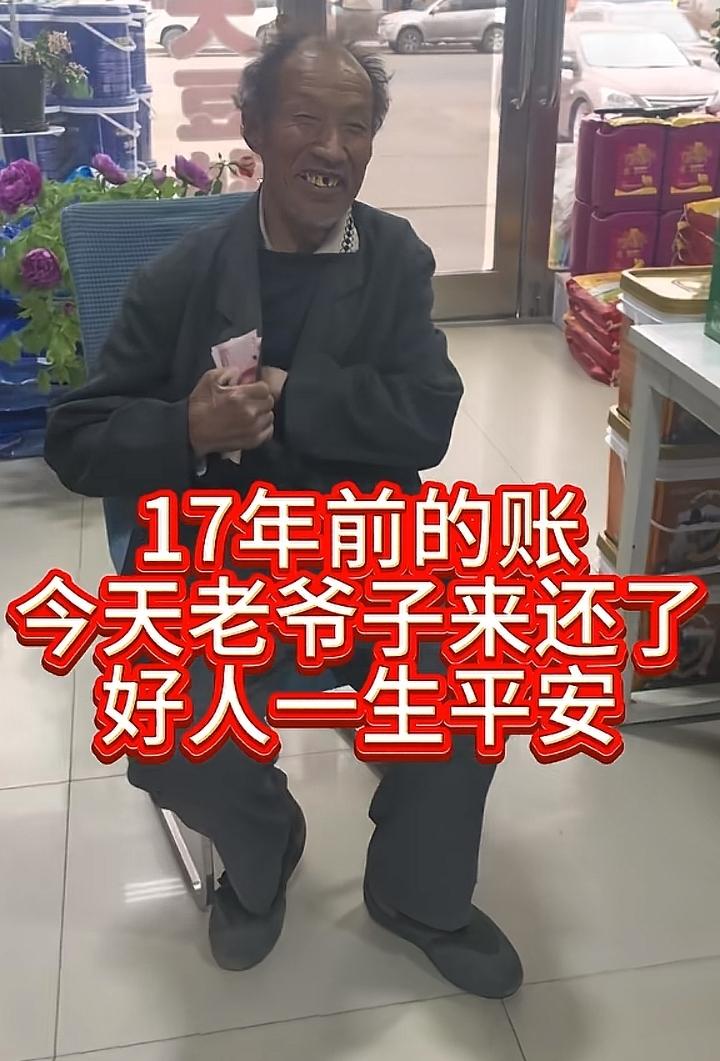 远房的表叔今天来还钱了! 钱是十七年前从我父亲的手里借的!1000元!当时表叔父母有病,夫人有病,三个孩子要抚养,要上学!生活非常困难!这么多年我们从来没有去要过!因为知道他困难,钱也不多,我们其实根本没打算他会还钱! 表叔人非常老实,我们相信他。他不是不还,是生活所迫还不起,但他根本没有忘记。