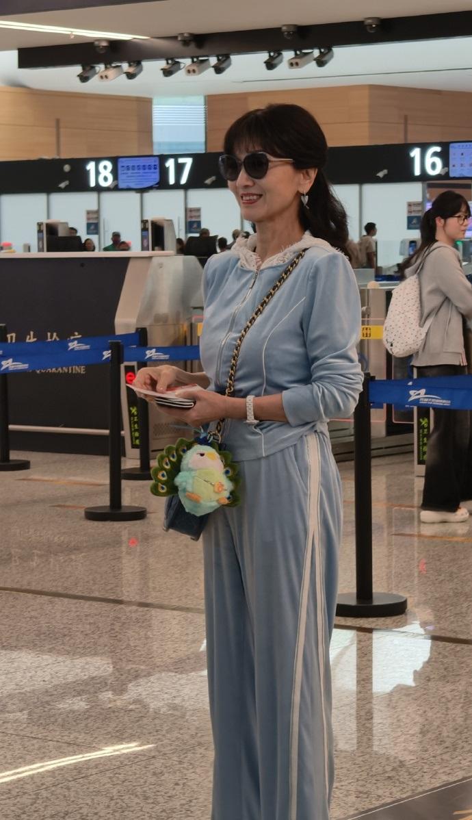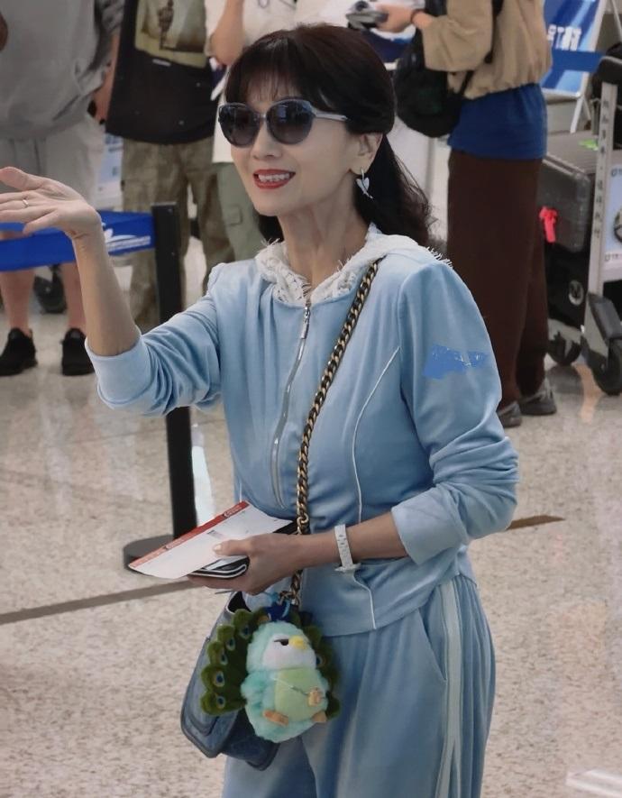 今天赵雅芝亮相成都机场,她这次穿了一身蓝色的运动装,看上去有种活力满满的感觉。 赵雅芝上身穿蓝色运动风卫衣,下身搭配蓝色运动裤,带给人一种洒脱之美。 她的身材是相当出众的,还留着超美的披肩长发,同时搭配了黑色的墨镜,气质超好。 赵雅芝笑起来的样子也很有吸引力,看起来又美又时尚,确实是太漂亮了。 她背着一款蓝色的包包,包包上有可爱的玩偶,这样显得很有减龄效果,让她凸显出可爱风情。