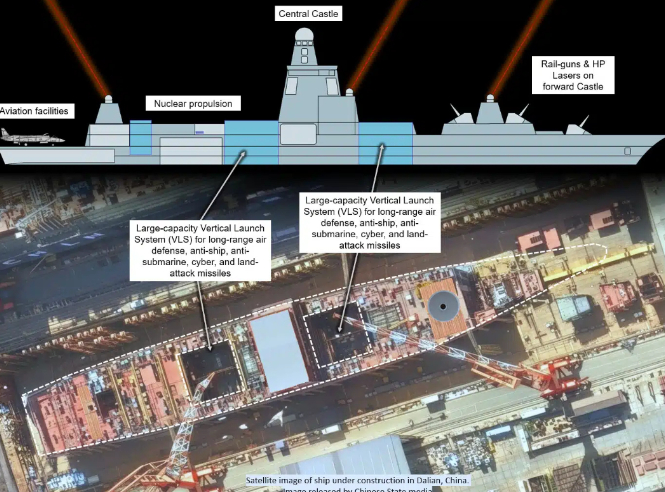 文章将这艘战舰的内部代号指向一个极具深意的缩写——BALLS,即“战斗突击近海激光舰”。文章称,这艘预计2027年下水的庞然大物,并非此前外界猜测的航空母舰,而可能是一艘排水量高达数万吨的超大型战列舰。