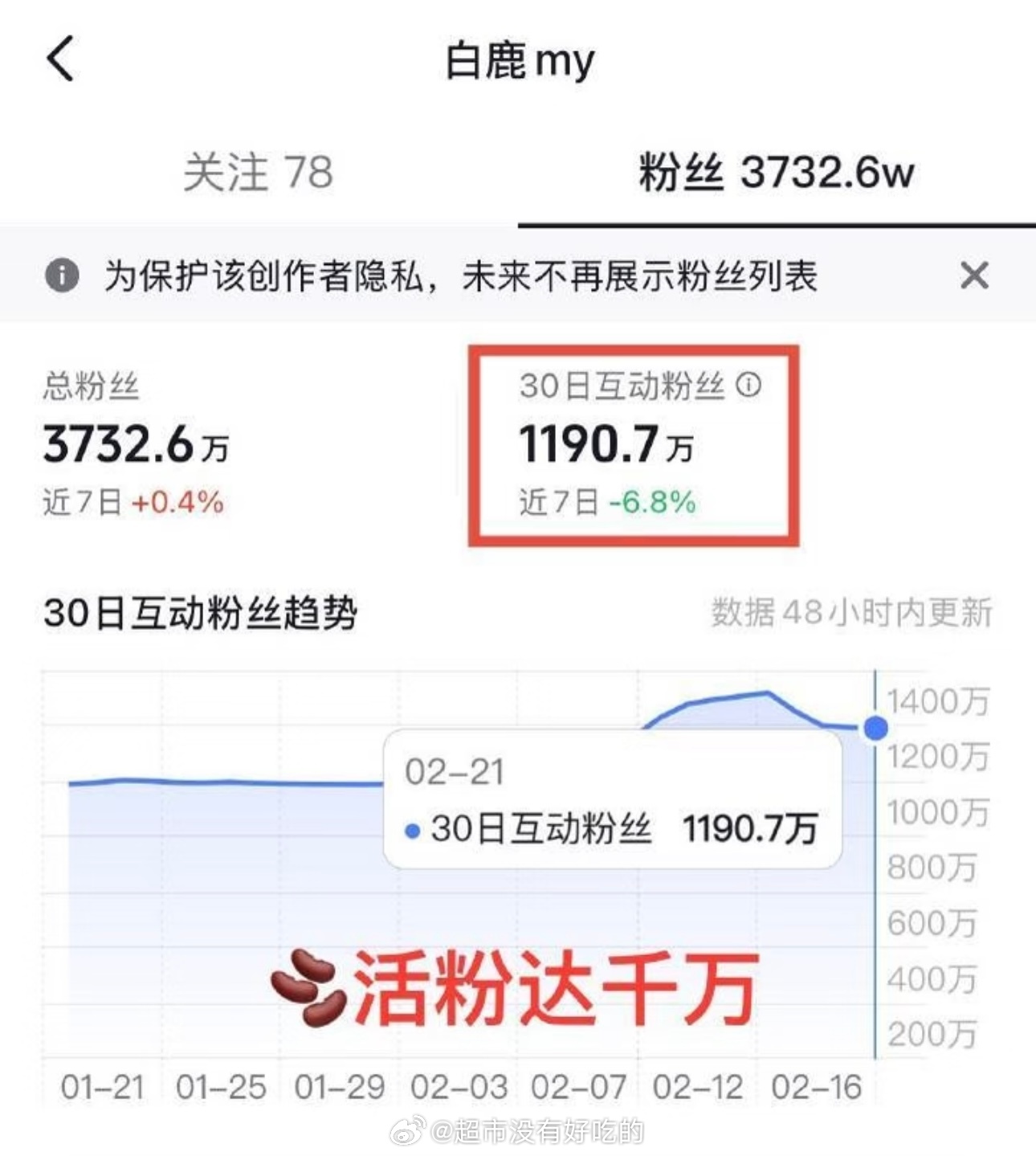 白鹿最新抖指大于所有在播剧活粉千万 一条抖涨粉17万+ 24h赞增长了240万活粉多就是这样吧,数据太干了白鹿白鹿