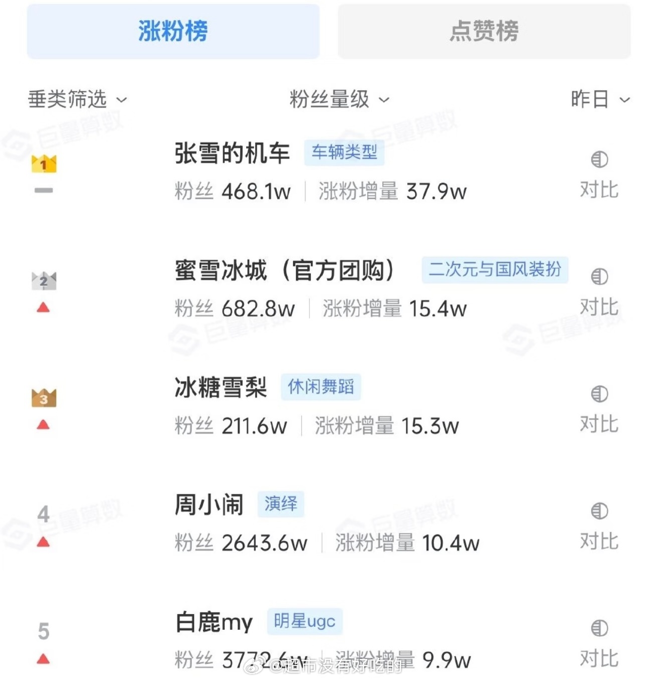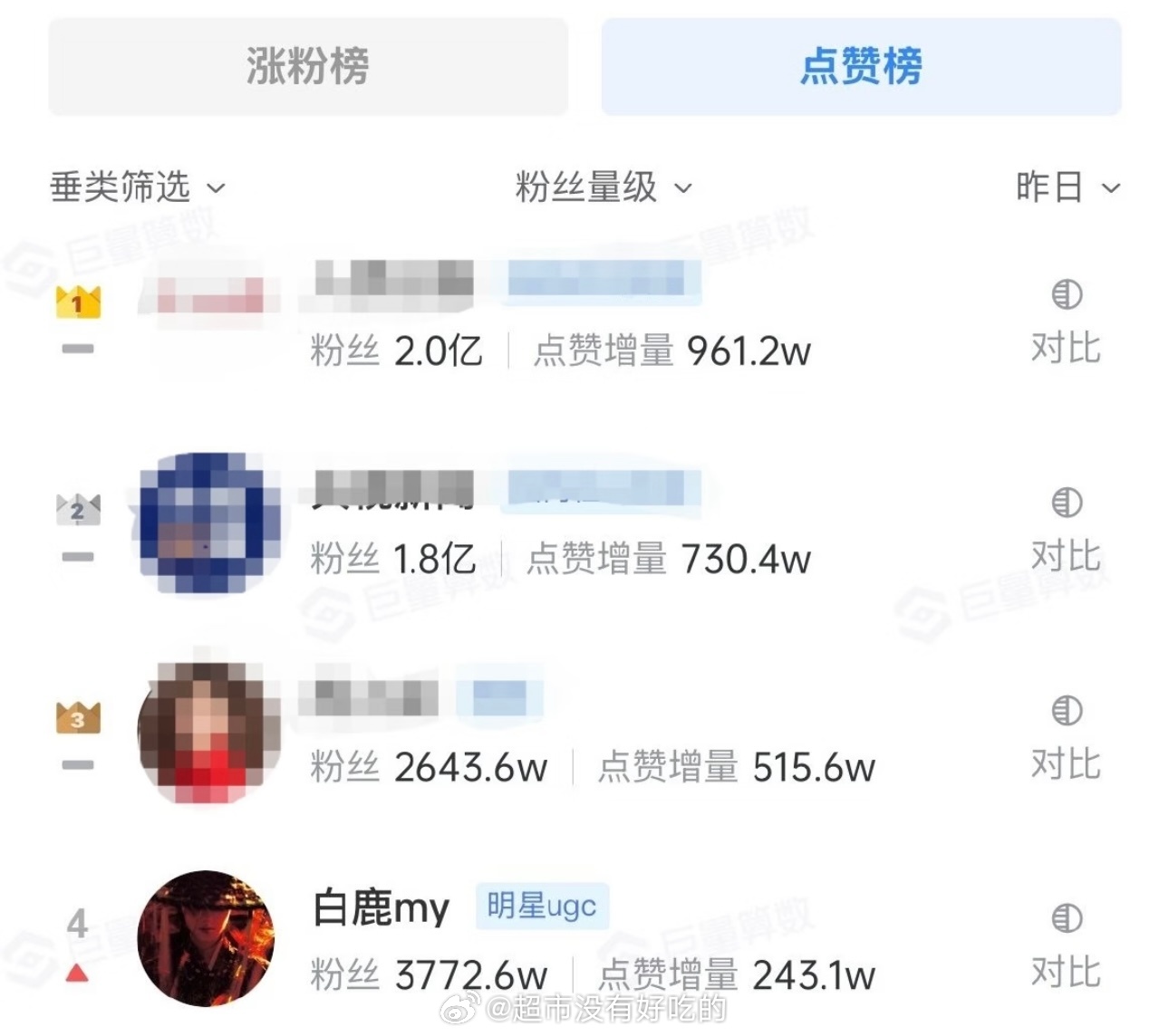 白鹿最新抖指大于所有在播剧活粉千万一条抖涨粉17万+24h赞增长了240万活