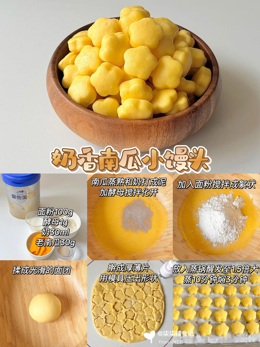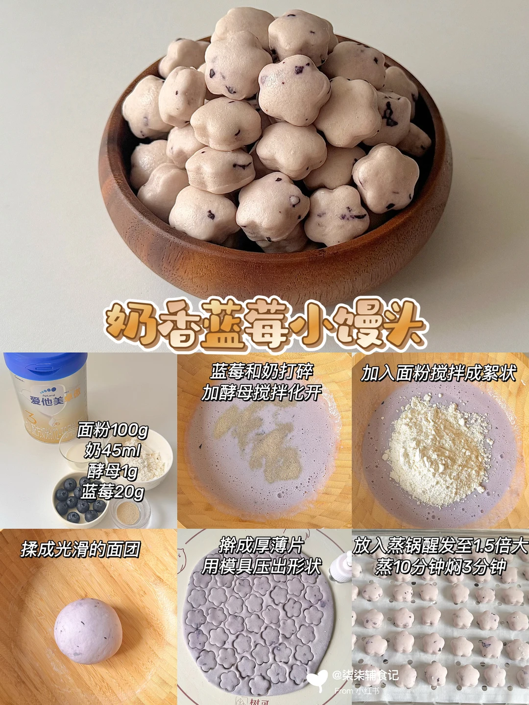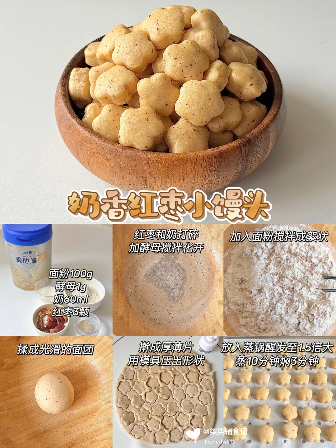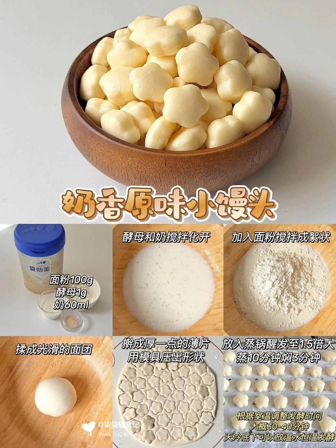 小馒头想要好吃,秘诀就是加点奶粉!这样做出来既有奶香又松软✨我用的是我家宝宝在喝的爱他美卓傲奶粉~