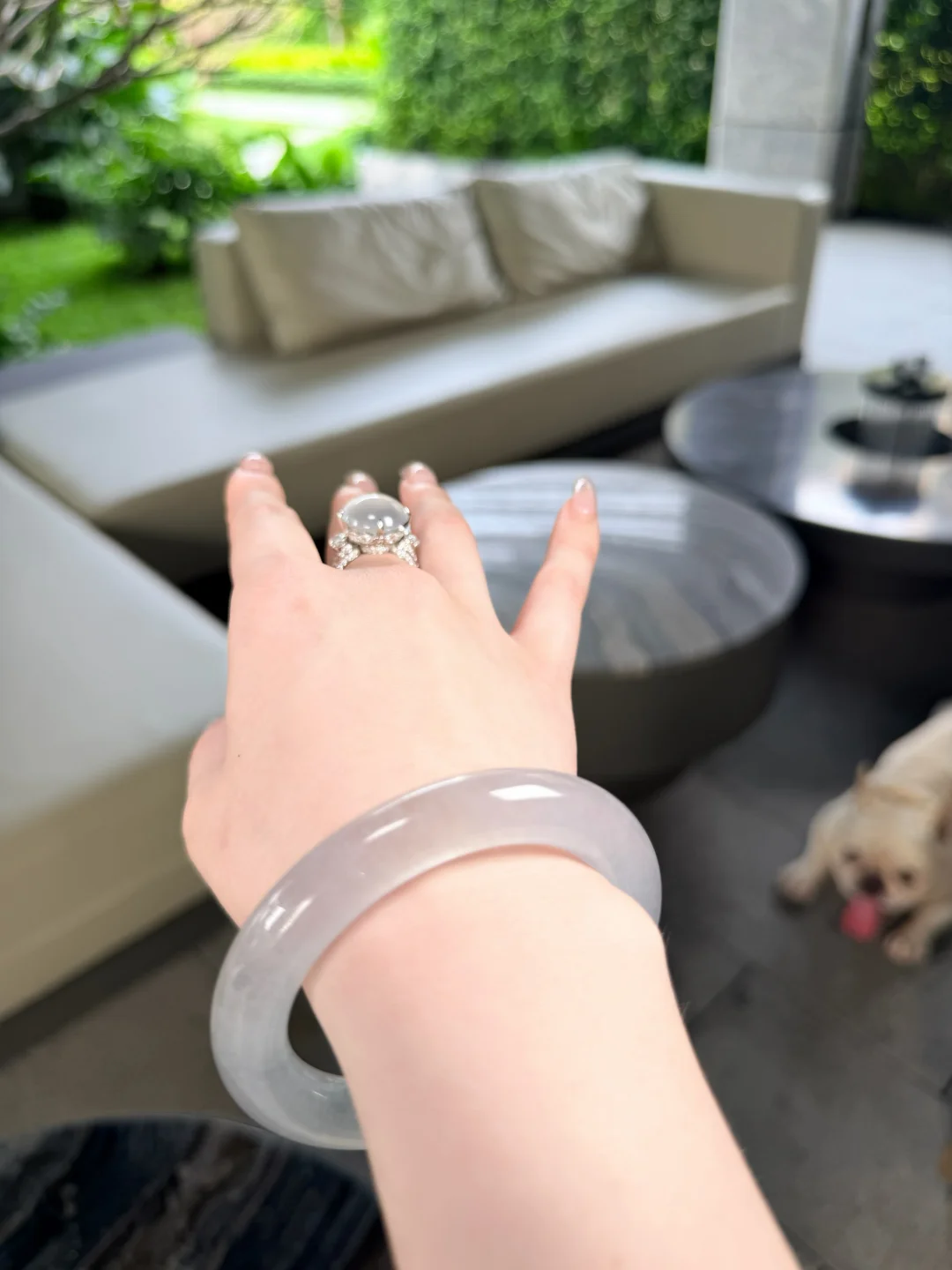 最近开始带紫罗兰手镯和玻璃种出门了