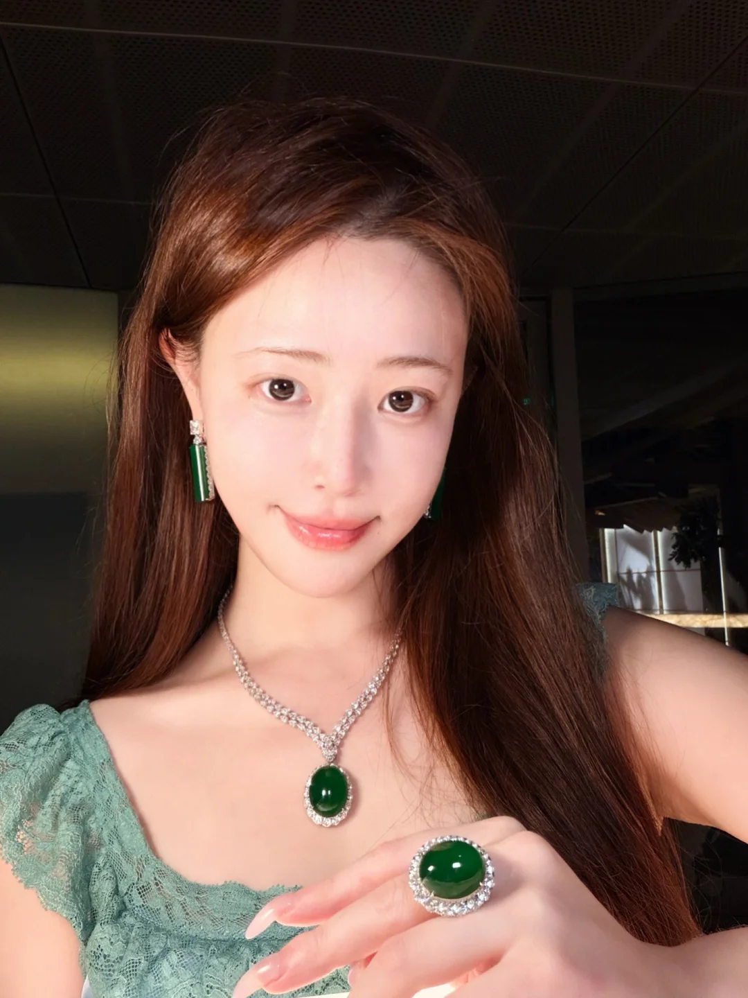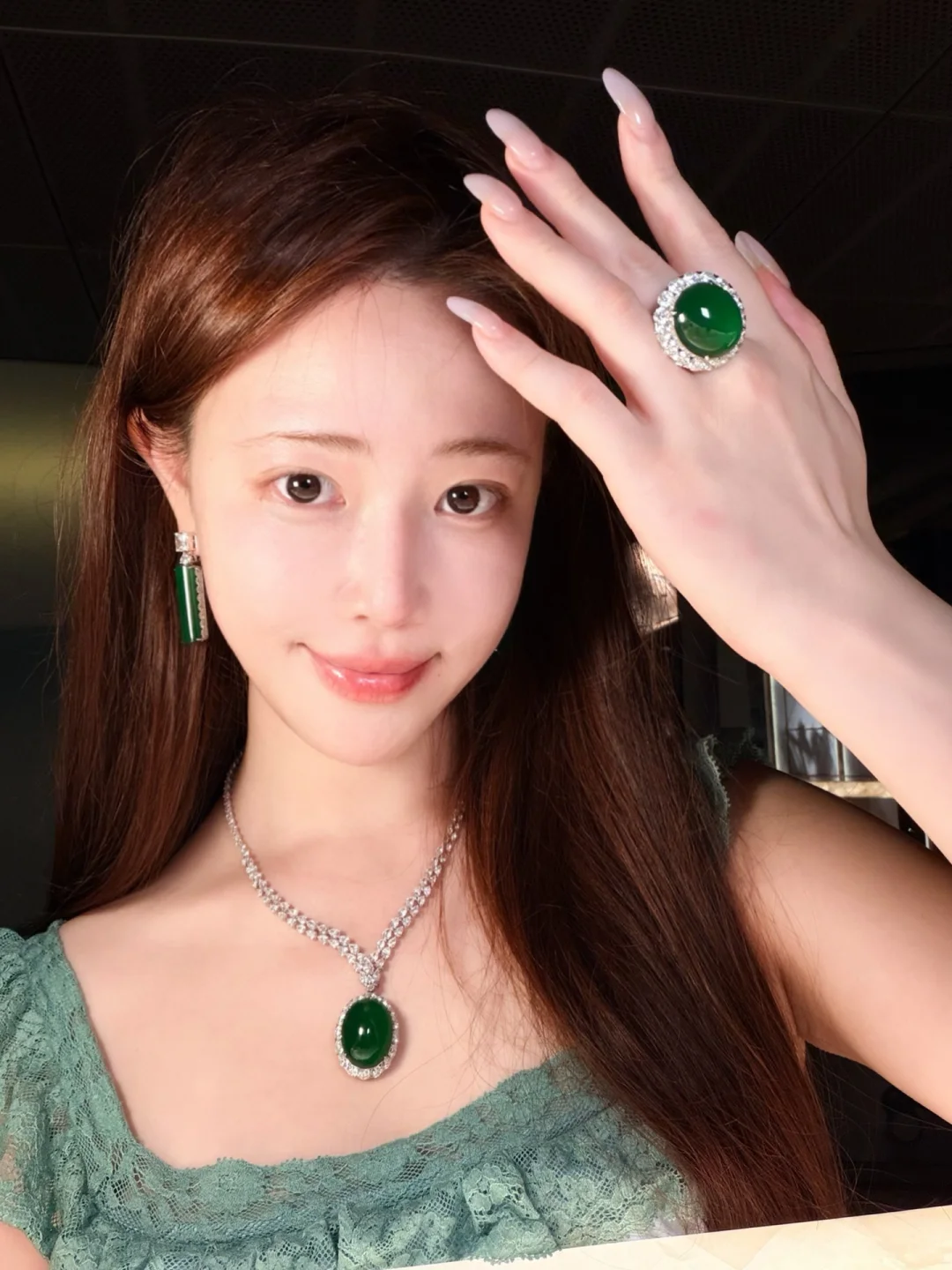 素颜皮肤淡淡的光泽和翡翠珠宝光就是绝搭!