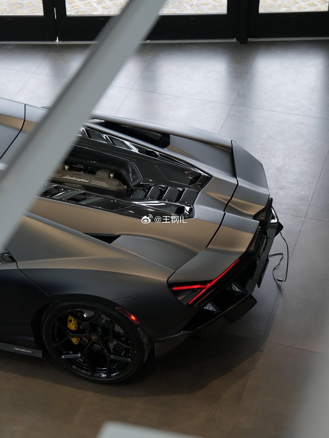 2026款|兰博基尼Revuelto定制版缎面哑光黑。拥有6.5L自然吸气V12+三电机插电混动,综合功率1015 CV(约1001马力),8速DCT,全轮驱动;0-100km/h 2.5秒,极速>350km/h。兰博基尼