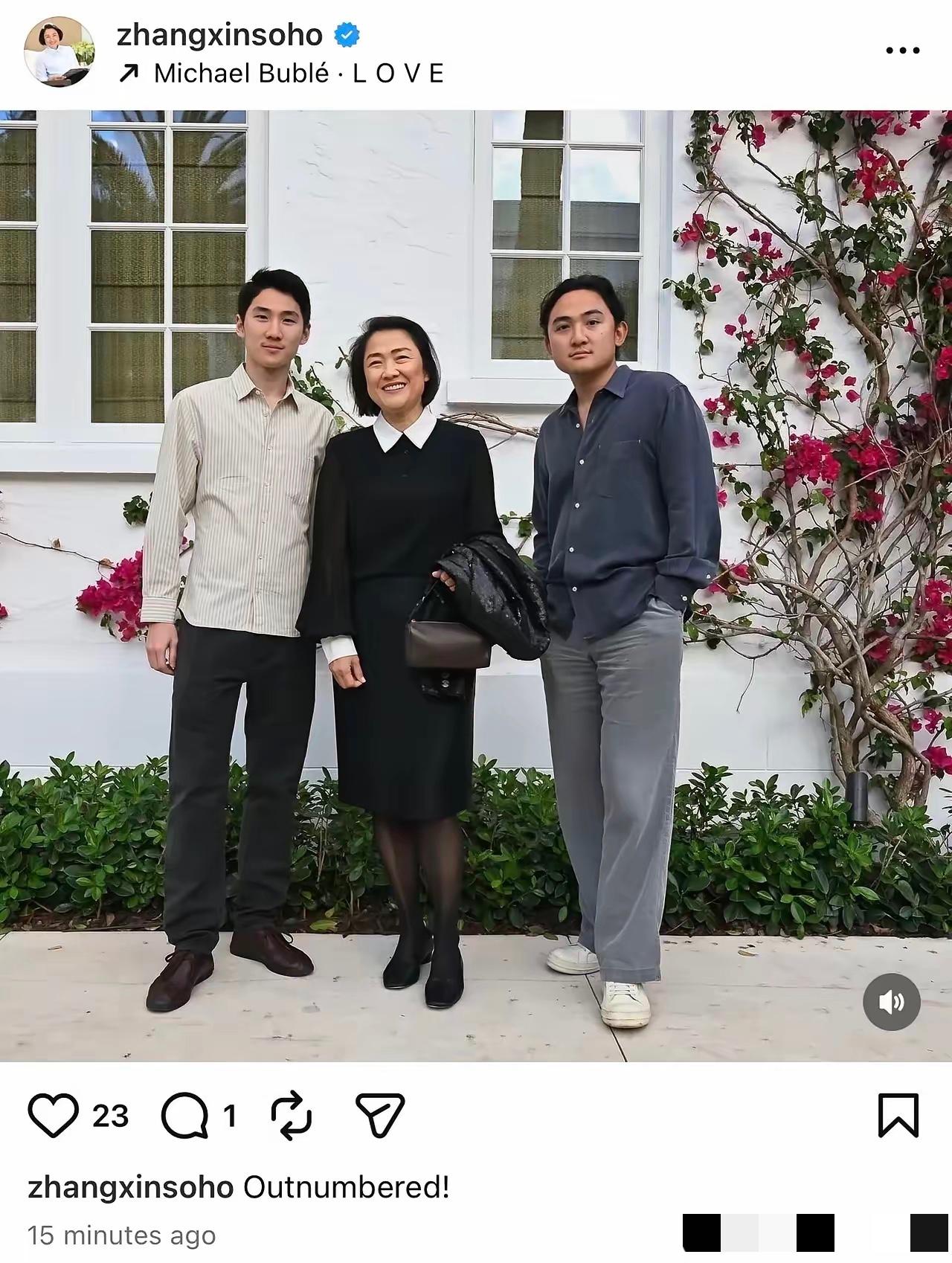 潘石屹老婆张欣这波晒照真是把家庭幸福狠狠秀出来了。照片里和两个儿子的温馨模样,再配上那甜蜜的配文,感觉这周末过得相当惬意。不过,潘石屹夫妇此前的一些商业操作可没少引发争议。 他们把国内不少资产变卖,然后去国外投资,很多人对他们这种行为不太满意。但在家庭层面,张欣晒出这样的合照,展现出的母慈子孝画面也让人觉得家庭氛围真好。 这一晒照举动,也让网友们的看法呈现出两极分化。一部分网友感慨于家庭亲情的美好,认为不论他们在商业上有怎样的做法,在家庭里能有如此和谐的氛围还是值得肯定的,家庭是温暖的港湾,这样的画面能给人带来治愈的感觉。 然而,另一部分网友还是难以释怀他们之前的商业操作。这些网友觉得,他们变卖国内资产转投国外,可能对国内的经济发展造成了一定影响,就算家庭氛围再好,也不能忽视他们在商业上的那些“不地道”行为。 其实,每个人都有自己的生活和选择。潘石屹夫妇在商业上的决策或许有他们自己的考量,但他们的行为也必然会受到大众的审视。而这组温馨的家庭照片,虽然能让大家看到家庭层面的美好,却也无法完全抹去之前商业争议带来的影响。