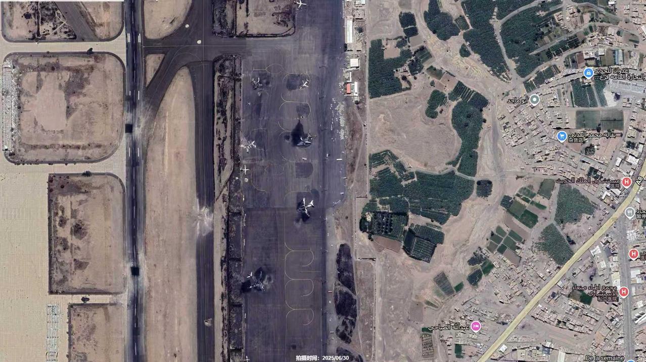 这是五张去年6月底,也门胡塞武装控制的萨那国际机场和荷台达港口,被以色列(5月份)轰炸后的影像图。(前三张是机场,后两张是港口) 可以看到跑道上的弹坑,损毁的飞机和机场建筑设施等。 可以看到港口被破坏的码头起重机区域,和损毁的油库仓储区域等。