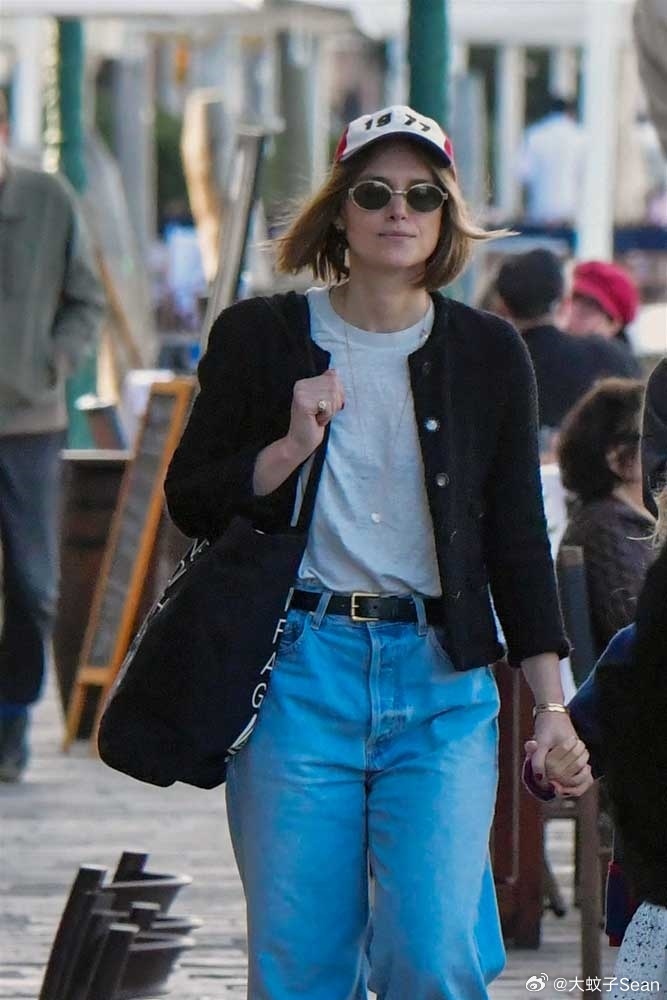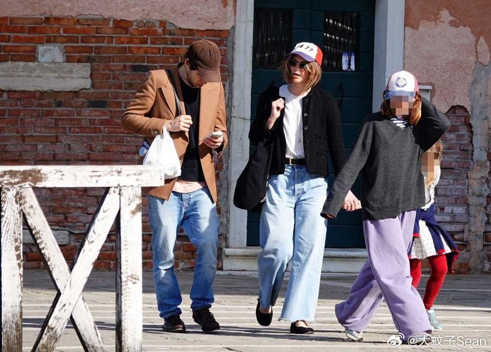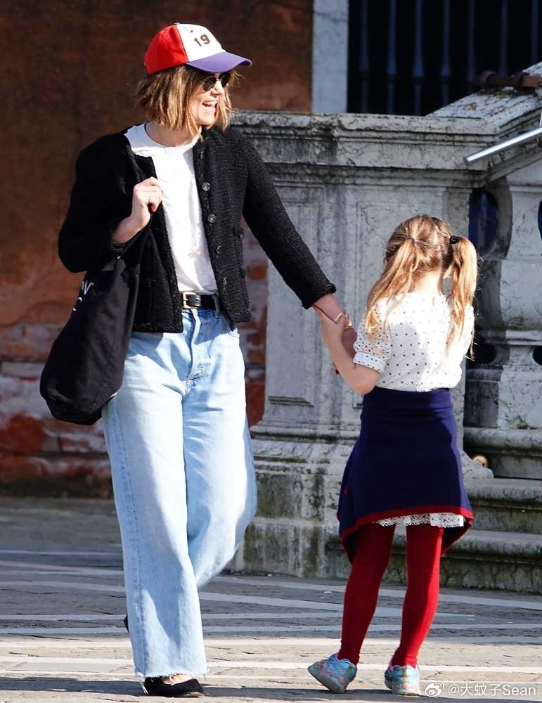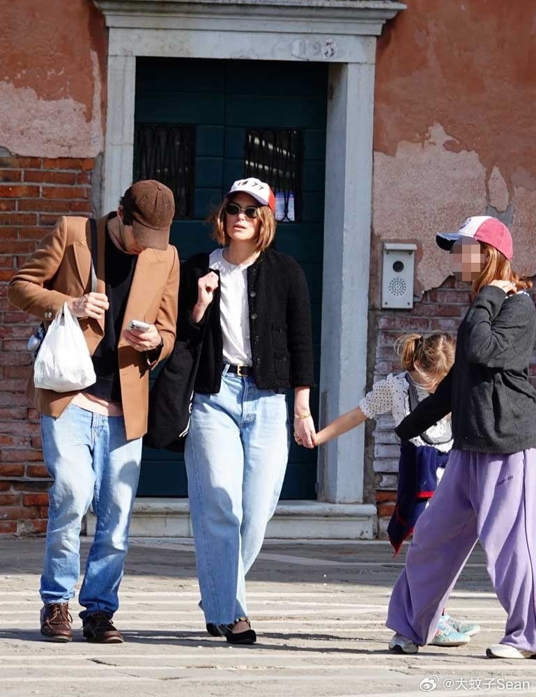Keira Knightley凯拉奈特莉和老公James Righton詹姆斯莱顿带着两个女儿Edie和Delilah游意大利威尼斯,一家四口街头散步,大的小的穿搭都好看!