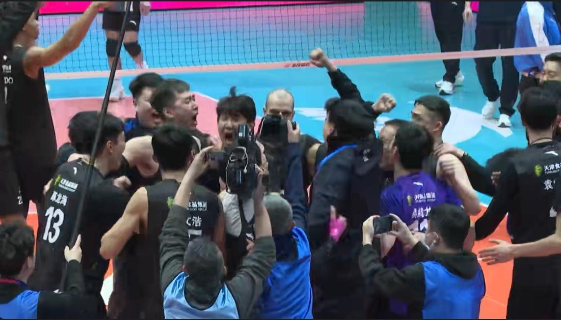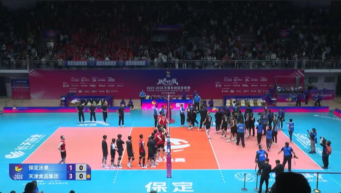 天津男排创造历史,首夺中国排超联赛冠军 2025-2026中国男排超级联赛决赛第三回合,天津男排客场3-1挑落河北男排,比分16-25, 25-22, 25-21, 25-23,从而场分2-1击败对手,首次捧起联赛冠军奖杯。祝贺天津男排! 河北: 温子华38扣23中2失5被拦、2拦0发25分 徐克30扣9中2失1被拦、0拦1发10分 帕纳森卡10扣5中1失0被拦、4拦0发9分 辛尼察2扣2中0失0被拦、3拦2发7分 隋翔宇16扣3中1失2被拦、2拦1发6分 王浩田2扣1中0失0被拦、2拦0发3分 崔德权1拦0发1分 天津: 阿历杭德罗52扣24中4失8被拦、1拦2发27分 薛智鸿29扣13中3失2被拦、0拦2发15分 王昌利5扣2中0失1被拦、4拦2发8分 拉扎尔21扣5中3失3被拦、2拦0发7分 陈龙海6扣5中0失0被拦、1拦0发6分 刘昊田0拦1发1分 毛天一1扣0中0失0被拦、0拦0发0分 河北-天津: 进攻得分:43-49 拦网得分:14-8 发球得分:4-7 对方送分:30-27 总得分:91-91 一传起球率:47%-68% 一传到位率:20%-29% 天津男排