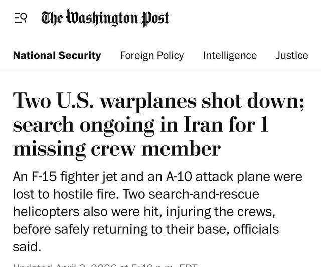 好家伙,伊朗方面真的是杀疯了!外媒透露,截至4月4日凌晨的过去24小时内,伊朗击落-击伤了至少5架美军军机。其中包括,1架F-15E战斗机、1架A-10攻击机、2架参与搜救的HH-60W“黑鹰”直升机、1架MQ-9察打一体无人机击落。有一说一,朗子比当初伊拉克猛多了,跟老美打得有来有回的。 2026年4月3日这天,美国和以色列对伊朗的军事行动已经进入第五周。美军一架F-15E战斗机在伊朗西南部上空被击落,这是这场冲突中美国首次有载人战机被伊朗防空火力打下来。飞机上两名机组成员中,一人后来被美方救回,另一人当时下落不明,美军立刻启动搜救。伊朗方面声称使用防空系统完成这次拦截,外媒报道也确认了这个事件。 搜救行动展开后,情况变得更复杂。两架HH-60W“黑鹰”直升机低空进入伊朗境内,试图找到并带回失踪人员。伊朗地面人员用轻武器朝这些低飞直升机开火,导致其中一架或两架直升机中弹,机上机组成员有伤员,但飞机最终还是返回了基地,没有完全损失。这次搜救过程中,美军还动用了其他支援力量,包括一架A-10攻击机在附近提供掩护,结果这架A-10也被伊朗火力击中,飞行员在波斯湾上空弹出座椅,后来被美方救起。A-10的残骸据报道落在科威特附近区域。 另外,一架MQ-9察打一体无人机在同一时间段的巡逻或支援任务中被击落,属于这次24小时内美军损失的一部分。整体来看,这些飞机分布在伊朗境内不同地点和周边海域,伊朗方面结合导弹系统和地面小武器,对不同高度的目标进行了拦截。美方官员向多家媒体证实了F-15E被击落和搜救中的额外损失,但具体坠落位置和全部细节还在核实中。这次事件让外界看到,伊朗在持续压力下仍能组织起有效的空中防御回应。 说起伊朗的防空能力,这次表现确实比2003年伊拉克那会儿要硬气不少。当时伊拉克军队面对美军空中优势,基本没怎么打出有效反击,很多飞机和系统很快就被压制住。伊朗这边不同,革命卫队长期以来在导弹和无人机项目上投入不少,防空网络覆盖了关键区域,能在复杂环境下锁定高速目标。外媒分析认为,伊朗这次能击伤多架美军飞机,包括搜救直升机,说明他们的地面部队和防空单位在配合上还有一定组织度,不是完全被动挨打的状态。当然,美军整体空中优势还是明显的,只是这次局部损失让冲突显得更有拉锯的味道。 冲突背景是美国和以色列从2026年2月底开始的联合行动,目标针对伊朗的核设施和军事能力。伊朗方面则通过导弹和无人机进行反击,双方在海湾地区和陆地上都有动作。F-15E事件发生在行动第五周,标志着伊朗首次成功击落美国载人战机,这点在美媒报道中被反复提到,因为上一次类似情况已经过去二十多年。搜救行动的风险也高,美军直升机进入敌方控制区,地面火力密集,伤员情况给后续救援增加了难度。 这场冲突的走向现在还不好说。美国总统特朗普那边之前表态要加大压力,伊朗领导层在之前以色列空袭中已经损失了包括革命卫队总司令侯赛因·萨拉米在内的高级人物,但地面防御体系似乎还在运转 回头看伊朗的表现,比起伊拉克战争时期确实多了一些回击空间。伊拉克那时候空中力量几乎被快速瓦解,而伊朗靠着分散部署和混合武器系统,在局部还能制造麻烦。