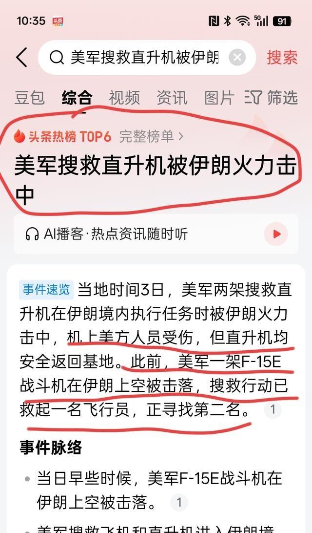 美国人的思维方式有的时候真的无法理解,为了去救一个被击落飞机的飞行员,派了两个直升飞机去救,难道就不怕这两个飞机飞行员的安危么?不过话说回来,直升飞机可以肆无忌惮的在伊朗上空飞行,说明了伊朗上空的防御系统基本没有了,这要是派出地面部队那还得了! 这次事件发生在2026年4月3日,美国空军一架F-15E打击鹰双座战斗机在伊朗境内被地面防空火力击落。机上两名机组人员弹射逃生后,美方迅速启动救援行动,派出包括两架救援直升机在内的多架飞机进入伊朗领空展开搜索和提取工作。一名机组成员在当天被成功救回,另一名则在后续行动中于4月5日凌晨获救,整个过程中没有美国人员死亡。救援直升机在行动中遭到轻武器射击,机上部分人员受轻伤,但飞机最终安全返回基地。一架参与支援的A-10攻击机也被火力击中,飞行员在波斯湾上空弹射后获救。 从美国军事操作的角度看,这种救援决定体现出他们对己方人员安全的重视程度。F-15E被击落后,指挥系统在短时间内调动HH-60系列救援直升机和支持飞机,直接深入伊朗南部胡齐斯坦省附近的区域。两架直升机进入后,一架负责接近弹射地点进行提取,另一架提供配合。整个过程持续了几天,先救出一人,另一人位置不明时搜救范围扩大,动用了HC-130J等空中指挥平台和无人机协助。美方在行动中面对地面火力,但直升机仍能完成任务并撤离,这让外界注意到伊朗防空体系在当时冲突阶段已受到明显削弱。之前美国方面曾表示掌握空中优势,这次直升机能低空进入并反复操作,确实反映出当地雷达和导弹系统的实际效能有限。如果换成大规模地面部队推进,面临的复杂地形和潜在抵抗会完全不同,风险和后勤压力会大很多。 这种做法在很多人看来有点难以捉摸。明明已经损失一架战机,还要再派直升机进去冒风险救人,而且直升机本身也中了枪。为什么不干脆放弃或者用其他方式?美国军方在类似情况下往往把人员回收放在优先位置,这跟他们的训练和文化有关。飞行员和机组从一开始就接受生存和逃生教育,部队则有专门的战斗搜救单位,习惯在敌后环境执行任务。事件中两架直升机都遭到射击,一架载着获救人员的飞机在返航时被轻武器击中,机组有人受伤,但没有造成更大损失。另一架也受影响却安全返回。这说明美方在规划时考虑了风险,但还是选择了执行。伊朗方面则报告了击落情况,并有地方官员提到悬赏相关信息,不过美方通过协调完成了第二人的提取。 后续搜救工作涉及更多飞机和特种人员支援。第一名机组成员在周五被直升机接走后,行动没有停止。美方扩大搜索,使用夜间设备和电子措施在山区继续排查,同时保持空中掩护。过程中发生交火,但所有参与者最终安全撤离。4月5日凌晨,第二名成员也被救回,总统随后确认所有美国人员无一伤亡。整个事件从战机被击落到完全撤离,只用了不到两天时间。伊朗媒体发布了残骸照片,并宣称击落行动成功。美国官员则强调救援完成,没有进一步人员损失。 从实际效果看,直升机能在伊朗上空活动,确实暴露了当地防空能力的现状。冲突爆发以来,美国和相关力量对伊朗目标进行了多次打击,防空网络可能已出现缺口。这让直升机得以进入执行任务,而没有遭遇重型导弹拦截。如果是地面部队大规模进入,情况会完全不一样,山区地形、补给线和抵抗力量会让行动成本大幅上升。美方这次选择空中救援而不是其他方式,符合他们一贯的做法,就是尽量减少己方地面暴露,同时快速回收人员。 这件事放在当前冲突背景下,有几点值得注意。首先,美国军事行动中对人员的重视是长期形成的机制,从训练到实际部署都有体现。其次,伊朗防空在这次事件中的表现,说明先前打击产生了效果,直升机能来回穿梭就是直接证据。但这不等于完全没有抵抗,地面轻武器和局部火力还是造成了损伤。第三,如果把救援规模扩大到地面部队,逻辑上风险会指数级增加,地形复杂、情报不确定性高,后果很难控制。美方这次行动虽然惊险,但最终把人都带回来了,没有留下更大缺口。 这次救援反映出美国在处理类似事件时的实际选择。他们派直升机进去救人,确实承担了额外风险,但也显示出对空中优势的依赖和对人员回收的坚持。伊朗上空防御的实际情况,通过直升机能顺利活动这一点看得比较清楚。地面部队如果介入,后果会严重得多。