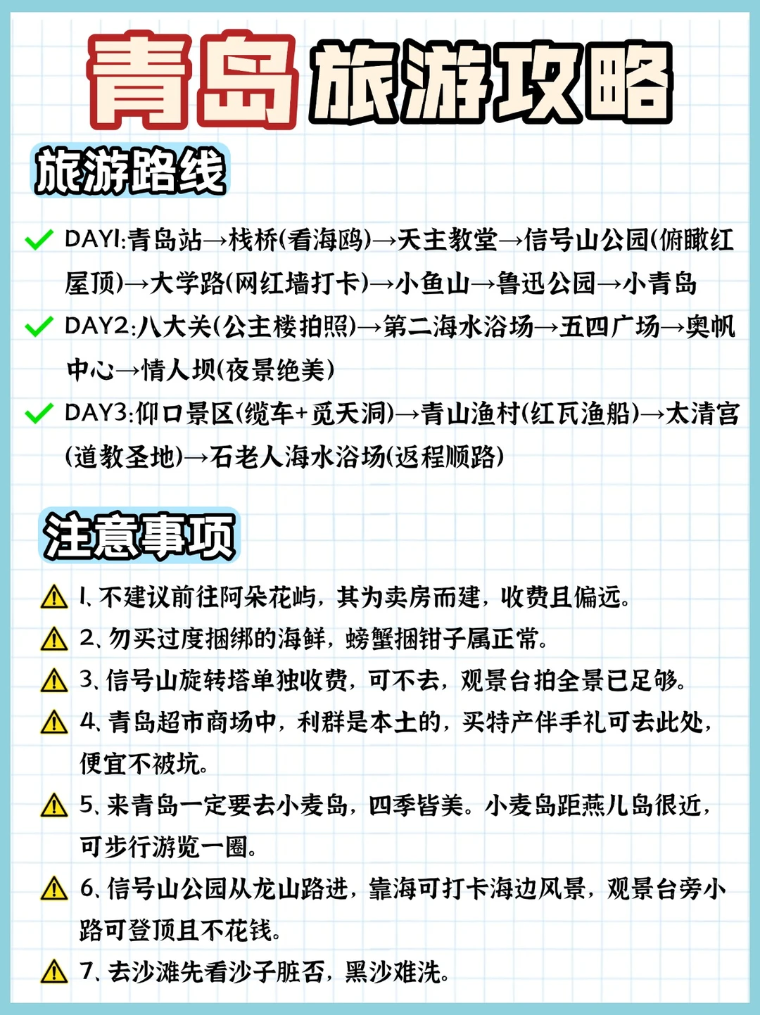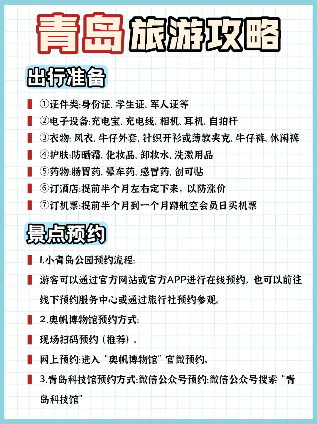 💡 终极建议:青岛景点集中但坡多,穿舒服的鞋!防晒+外套必备(海风超冷)~