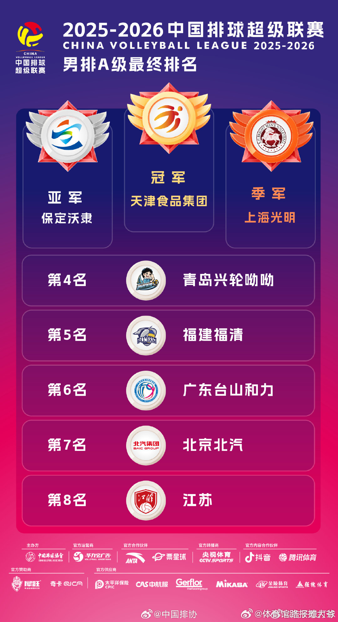 国际排坛动态 东亚,东南亚这边今天产生了3个联赛冠军,中国男子排超的天津、韩国女排联赛的GS燃气和泰国男排联赛的呵叻 cr:浩子想打球