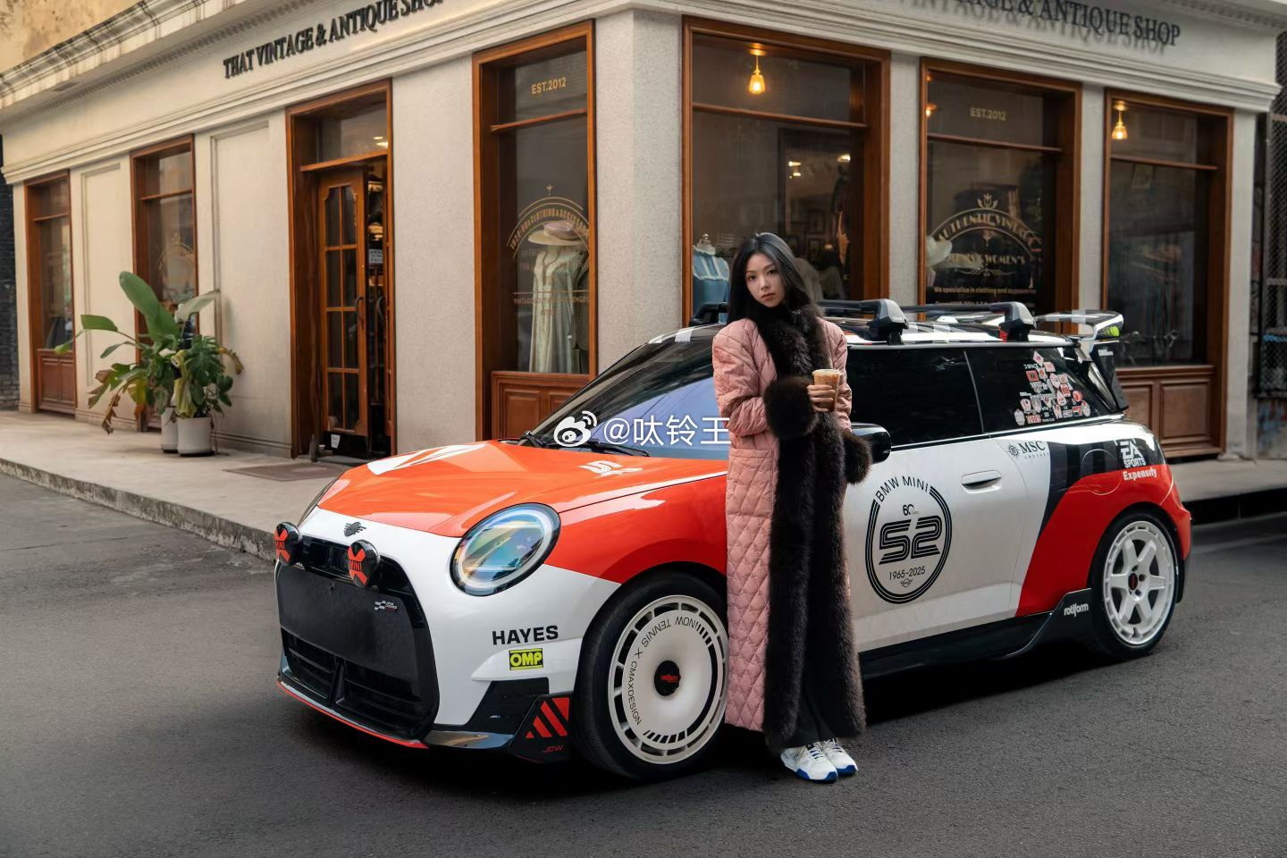 当复古店铺遇见街头玩家。红白双拼MINI一身“52号战衣”,美国潮牌Rotiform加持,锻造轮毂镂光藏影,态度拉满——经典与潮流,从来都是一条街的距离。