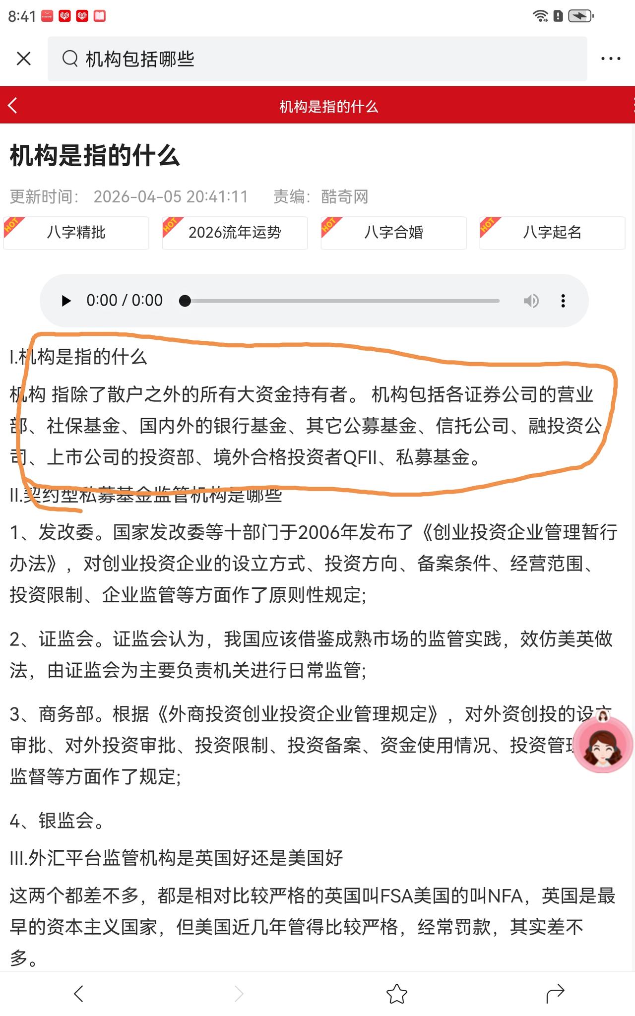 警惕你遇到的唱空唱熊者,中国股市,早已进入结构性的大环境,指数与你是否赚钱,没有太大的关联,选股能力优异,选择了符合市场预期的股票,赚大钱,选择不对,亏大钱,亏钱。 这些唱空唱熊者 ①有割肉后空仓者。 ②有代言人。 市场永远有空方与多方,机构也有空方,专门做空者。 他们会利于一些所谓的专家出来唱空,那些专家是什么你都不知道,他们连股市的门都不进,进了也许也是失败者。 你看见谁在股市成功成名的来乱喊。 他们会不放过任何对他们有利的消息,试图影响受众。 如:3月开户数,他们只说散户数量不说机构开户数量,让一些人觉得散户来接盘了。 他们对机构开户数省略。 其实影响市场最大的是机构开户数,他们的增加,给市场真正带来长线增量大资金,是机构看好未来的标志。 什么是机构,看看下图解释。 投资成功是自己正确判断的体现,大环境稳定的情况下专注个股,以中线的思维,眼光长一点,格局大一点,风雨过后见彩虹,千万不能让别人的认识左右自己的投资,自己为自己的资金负责。 祝大家投资愉快,账户长红!