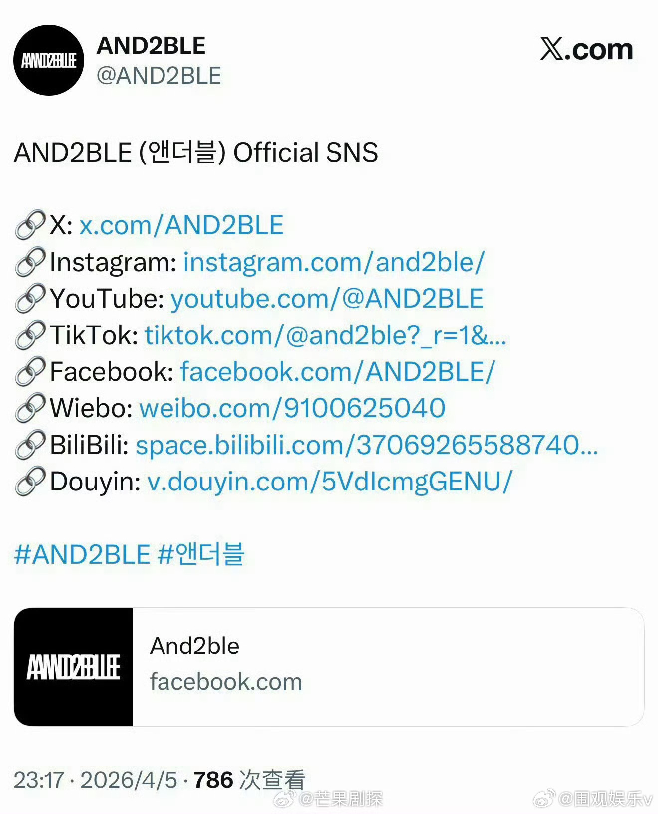 and2ble各平台账号已开通乐华新男团and2ble开通各平台账号乐华新男团
