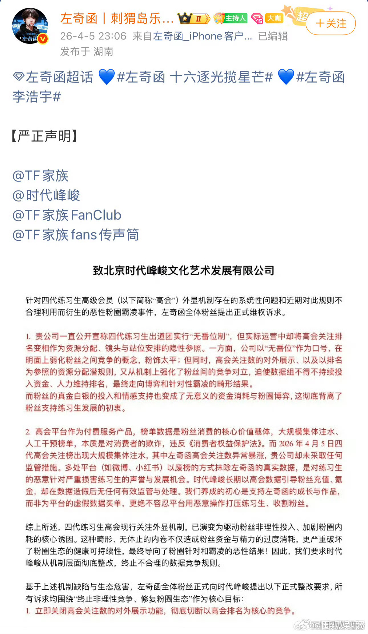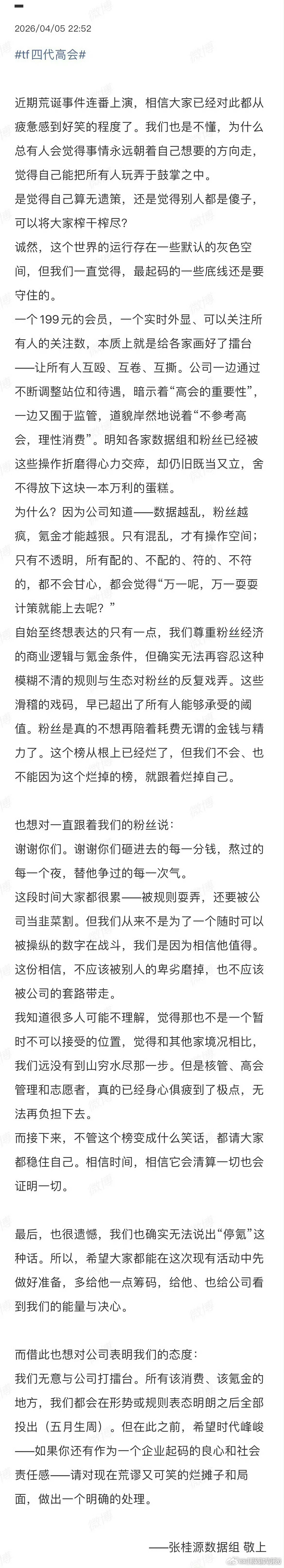 王橹杰杨博文张桂源左奇函粉丝维权四代粉丝就高会问题维权看了一天表维权完全没问