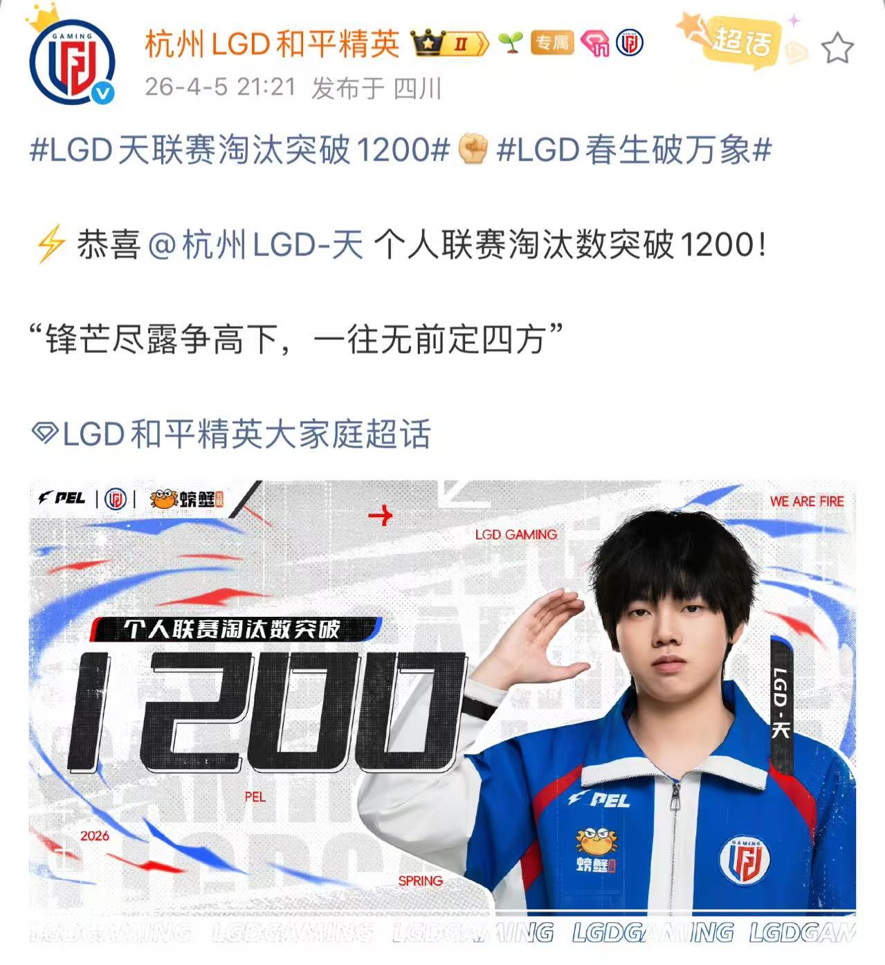 LGD天联赛淘汰突破1200 LGD天联赛淘汰成功突破1200大关,每一次出击都精准致命,用实力书写属于自己的里程碑!