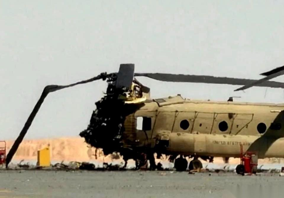 美军一架支奴干重型直升机,就这么杵在科威特的军营里,一声巨响,没了。 肇事的,是