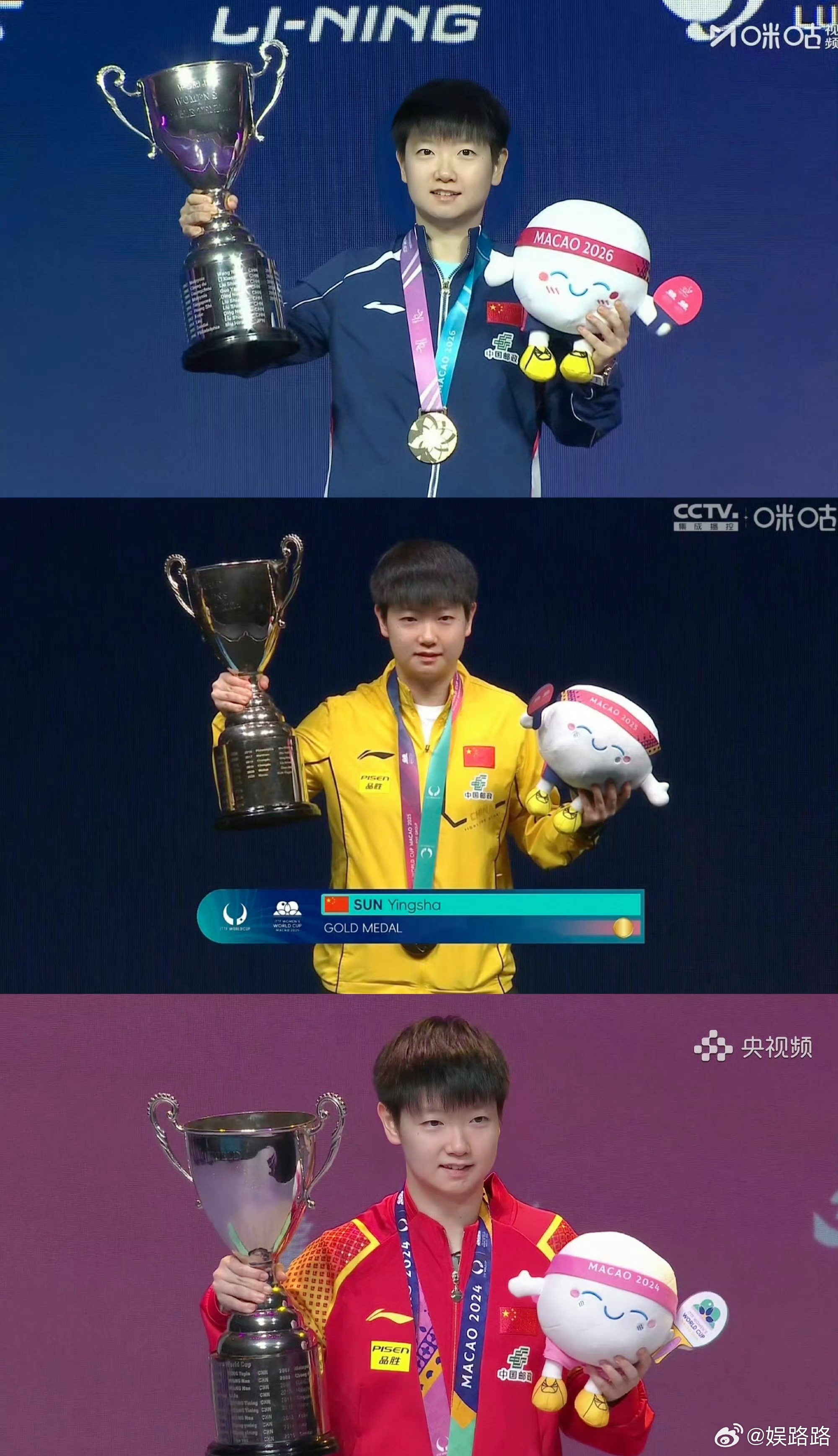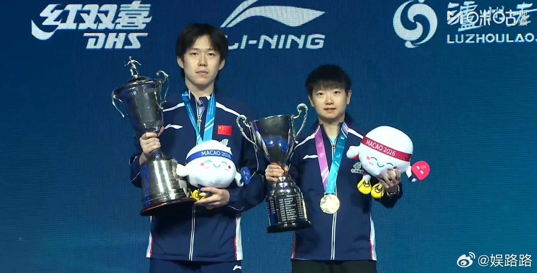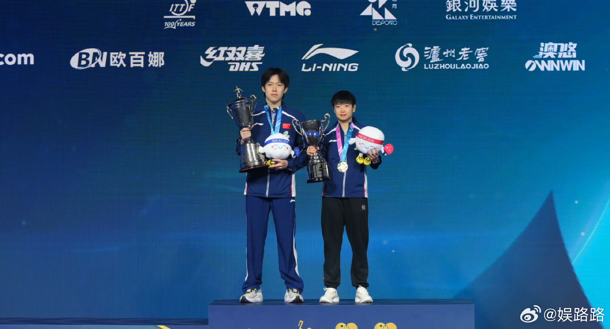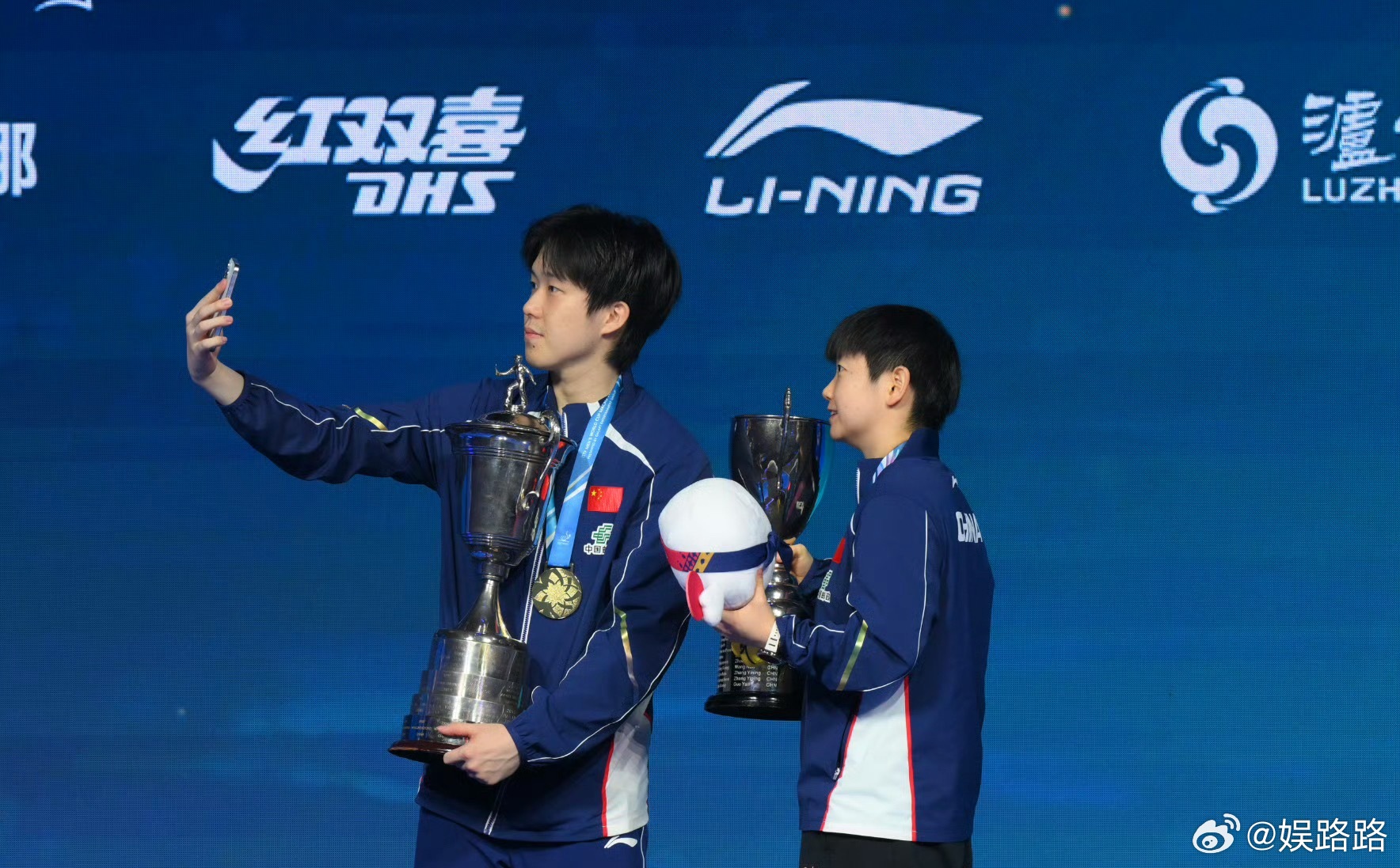王楚钦孙颖莎捧杯合影王楚钦孙颖莎捧杯合影