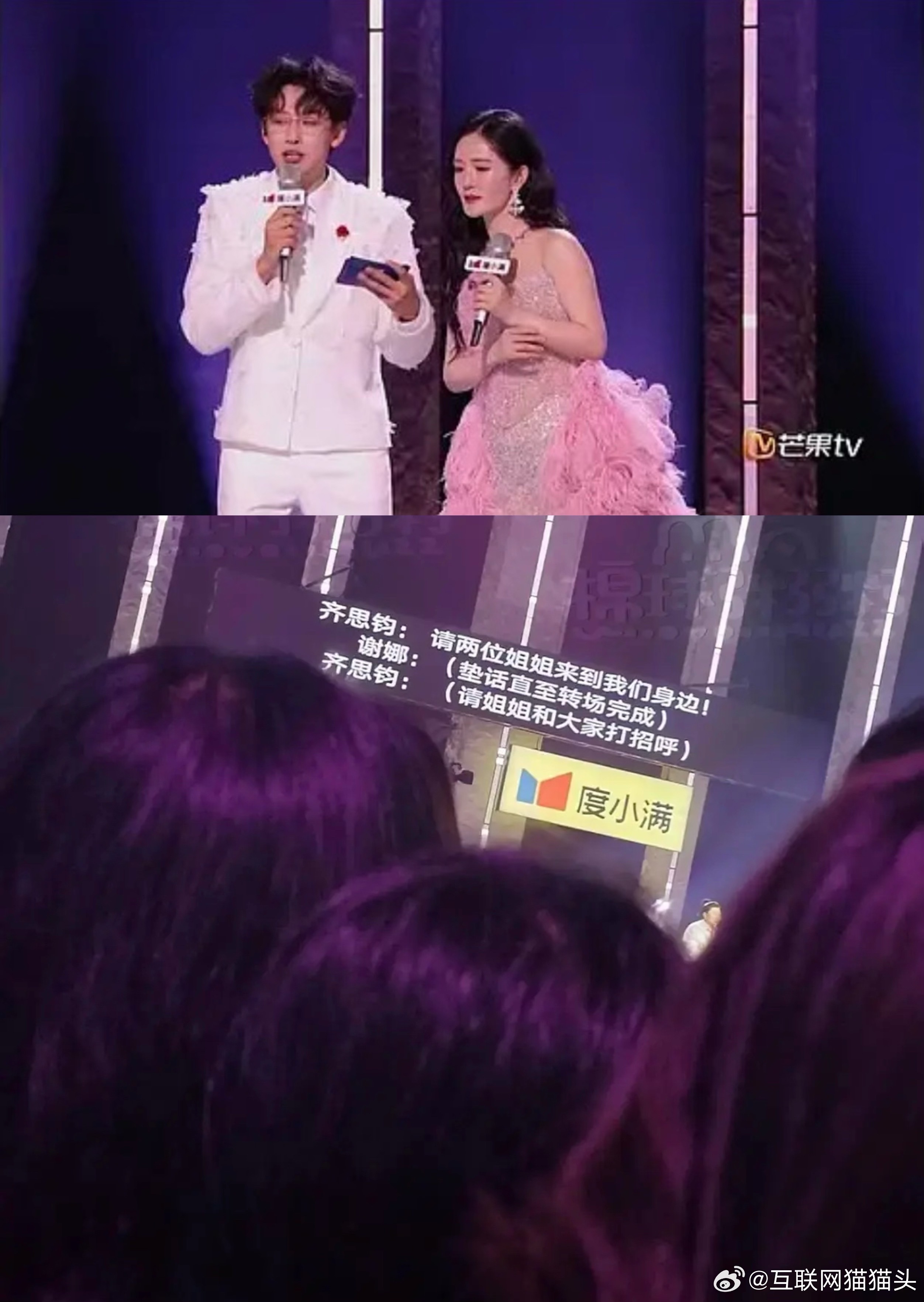 浪姐的提词器被拍了,男的有耳麦有提词谢娜没有耳麦还得自己发挥