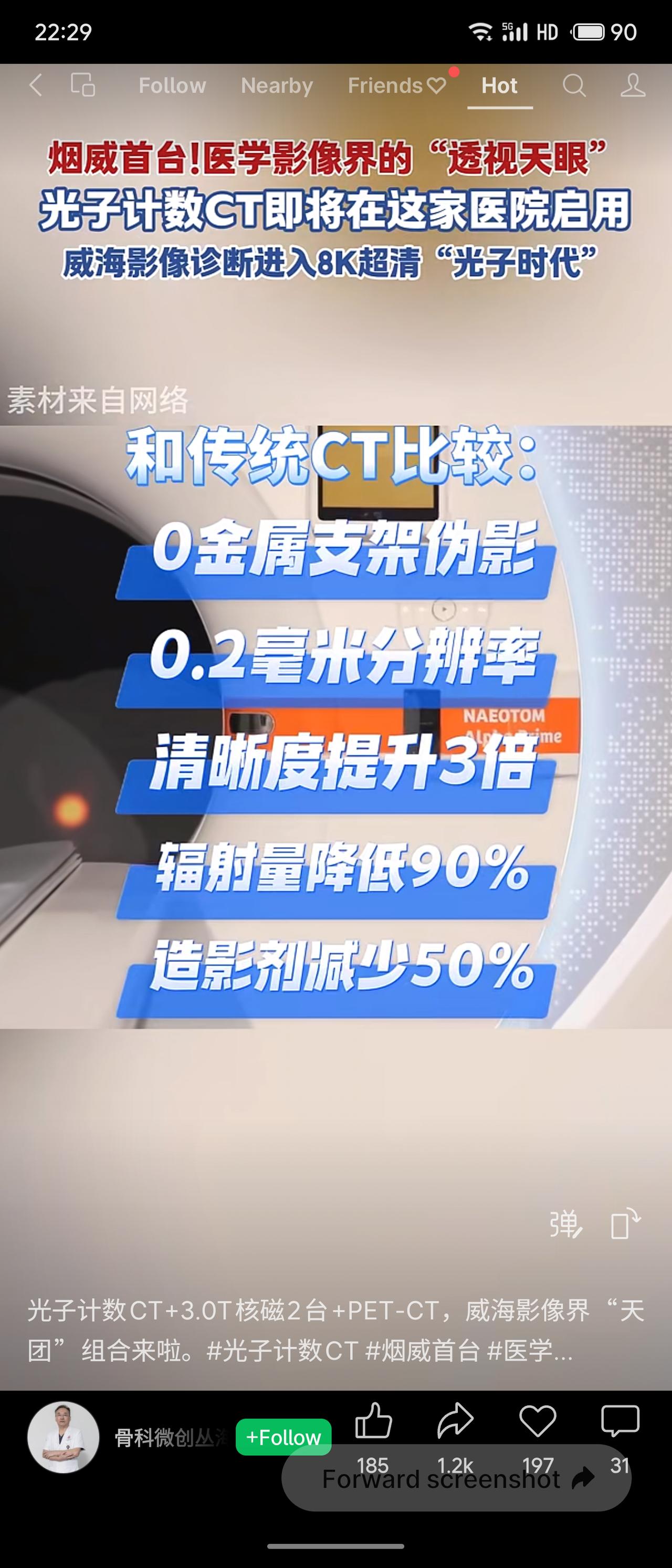 烟威首台光子计数CT即将在威海启用,被誉为医学影像界的“透视天眼”,标志当地诊断进入8K超清“光子时代”。该技术辐射量仅为传统CT的十分之一,造影剂减半,分辨率达0.2毫米,清晰度提升3倍,且无金属支架伪影。作为全省第三家引进单位,这台设备将为患者带来更精准、低损的检查体验。