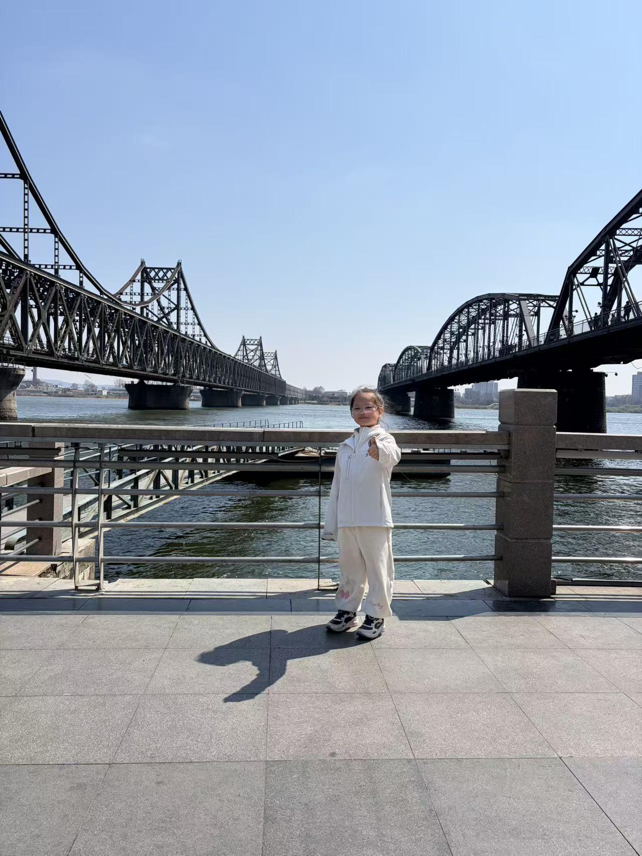 清明小长假,带着大孙宝来游玩,鸭绿江的铁桥,给她现场讲解爱国故事。