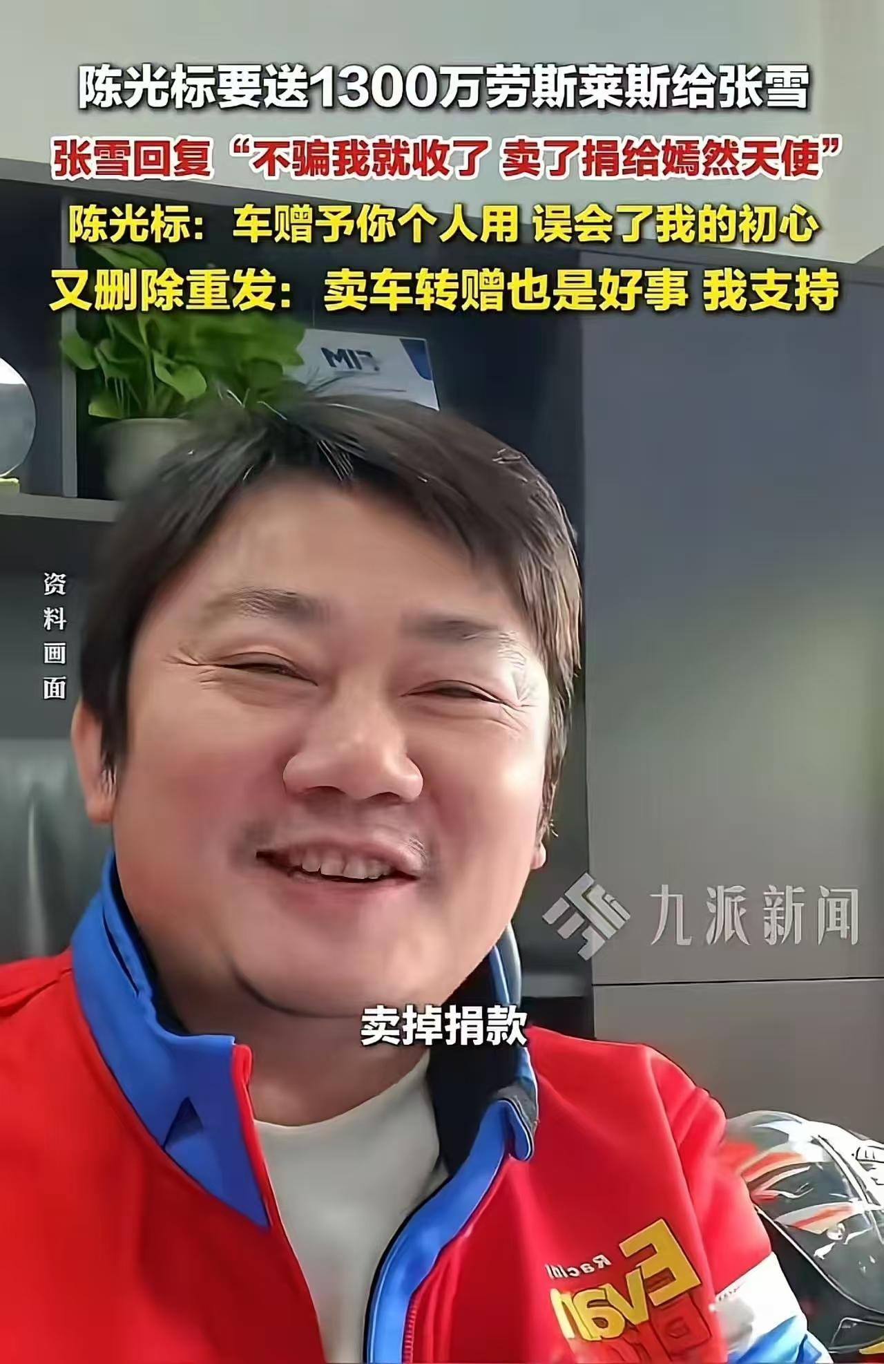 陈光标又让人意外了!不管别人怎么说,标哥只要是真的捐钱就行,为陈光标点赞。 因为去年标哥说捐给嫣然的没捐,所以才有张雪的回应,这是把标哥架在火上烤,钱重要还是面子重要?标哥给出了答案。 直接早点捐给那个什么基金不就完事儿了,落了人家口实。张雪才是大聪明。 为标哥点赞最讨厌那些圈标哥的人,自己没点善心,老质疑别人。 标哥捐个千万,和咱百姓捐个100,80一样,标哥豪啊。 赠也好,送也吧,是我的心情。收也好,卖也吧,是你的格局。有本事你也捐一千万。 人家建议给你,你不领情,当着那么多网络的面说卖给二手车8,000,000,你当别人是傻瓜,别人不会自己捐给。