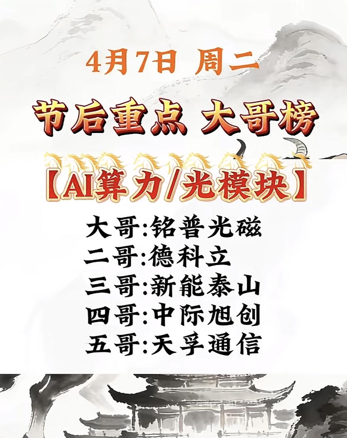 4月7日节后重点大盘点,快来一睹大哥榜的风采!🔥👏 4月7日节后重点大盘点来啦!先说说假期,2026年清明节、端午节、中秋节这三个小长假都连休3天不调休,像清明节4月4 - 6日,直接连着周末,打工人不用补班,简直太爽。 再看股市,4月7日节后大盘走势备受关注。多股涨超10%,CPO概念再度活跃。48家券商15家破净,这对散户来说,是机遇还是陷阱呢?罗博特科支撑位反弹,主力似又发力。还有电力板块,汇金高盛同步出手抢筹6朵电力金花,有望暴涨1000%。快来看看大哥榜,说不定有你的“梦中情股”!