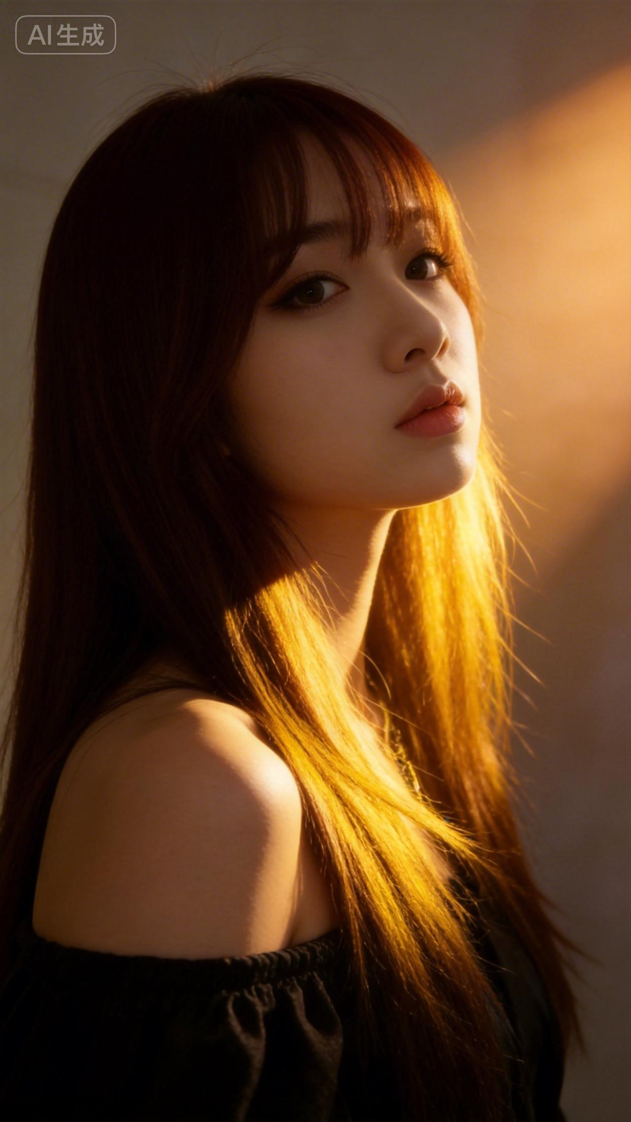 22岁,肤白貌美,冷白皮,鹅蛋脸,气质优雅端庄的美女,身着红色柔软露肩毛衣,鲜艳