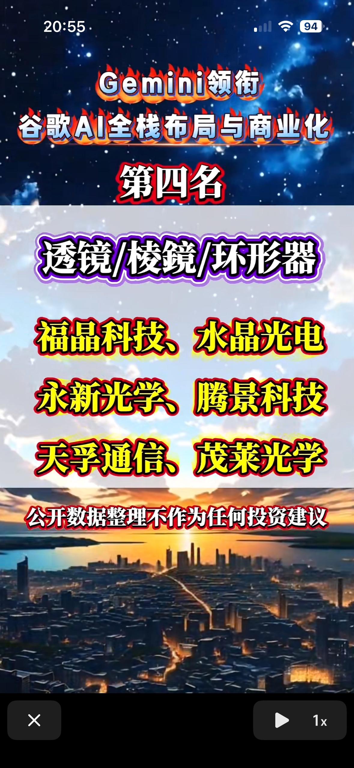 AI科技领航者:福晶科技、水晶光电等公司强势上榜! 福晶科技和水晶光电成为AI科技领航者,这可太牛了!福晶科技在激光晶体领域那是相当厉害,其产品广泛应用于激光设备,为AI的光学应用提供了坚实基础。像在一些高端激光雷达中,福晶的晶体元件能让雷达更精准地感知周围环境。 水晶光电也不逊色,它专注于光学光电子元件研发。在AR/VR设备里,水晶光电的光学镜片能带来更清晰、更沉浸的视觉体验,助力AI在虚拟现实领域的发展。这两家公司上榜实至名归,未来肯定还会在AI科技领域大放异彩!