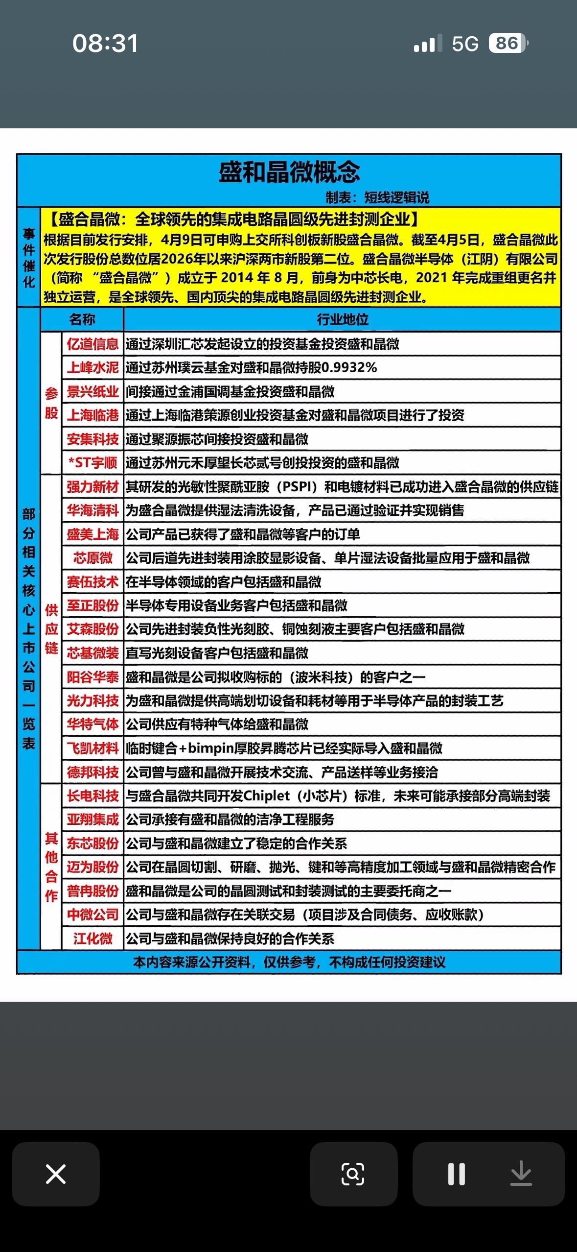 全球领先的集成电路晶圆级封装测企业,带你领略科技前沿! 盛合晶微可是全球领先的集成电路晶圆级先进封测企业,在2024年全球封测排名榜排第十。2025年10月30日其科创板IPO申请获受理,今年2月24日就过会,成了马年首单过会的科创板IPO项目。 它起步于12英寸中段硅片加工,能提供全流程先进封测服务,支持GPU、CPU等高性能芯片。2022 - 2024年,营收从16.33亿增到47.05亿,复合增长率69.77%,2025年上半年归母净利润达4.35亿。这次拟募资48亿,投向多个项目,加码前沿封装技术研发与产业化,科技感直接拉满!