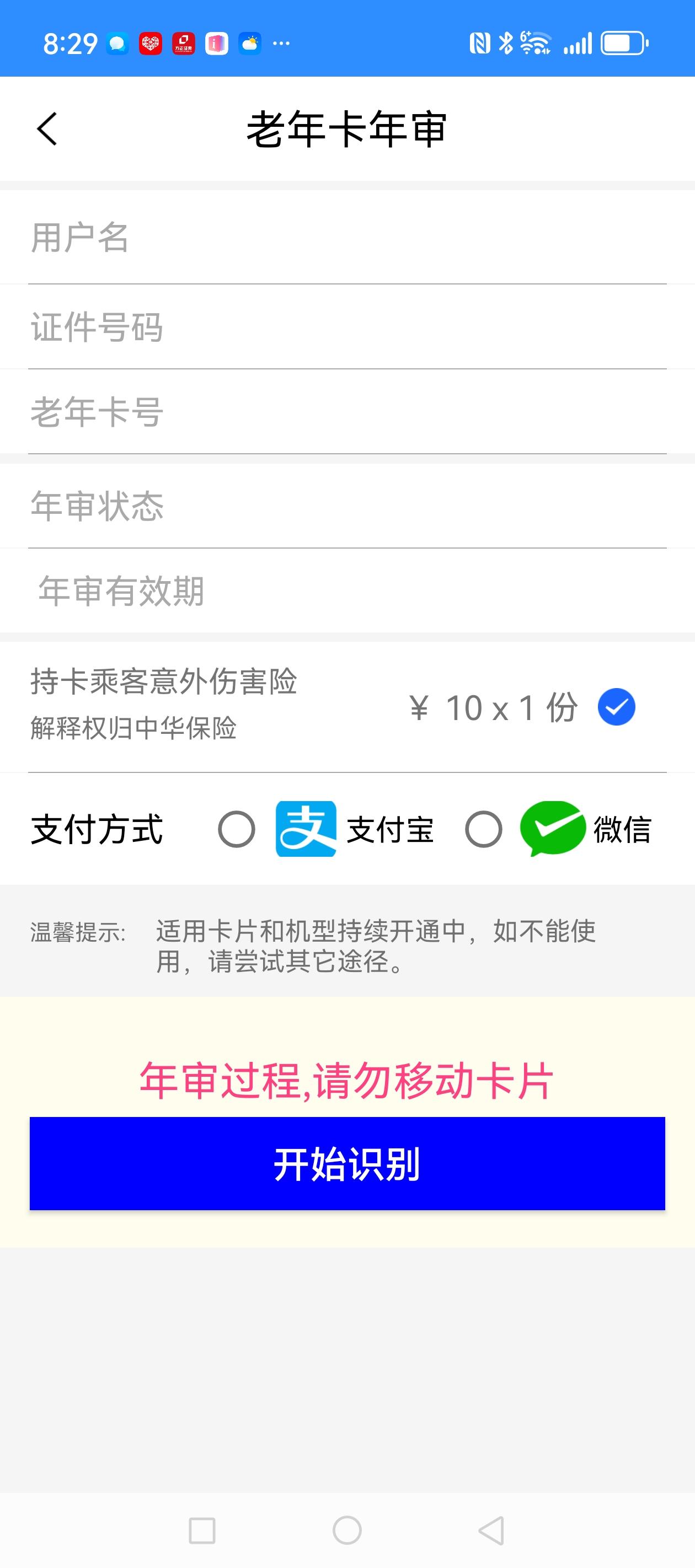 去年办事大厅办的老年卡,今年第一次年审!网上年审真的太方便,一分钟搞定,现在技术真先进。打开郑好办,搜到老年卡年审项,把手机放在老年卡上,一条保险缴费10元页面传出来,在微信,支付宝上付款。再把手机放在老年卡上,马上显示年审通过!郑州老年卡真的方便,地铁,公交乘坐皆免费,想去那转去那转!这不闲了吗,哈哈!