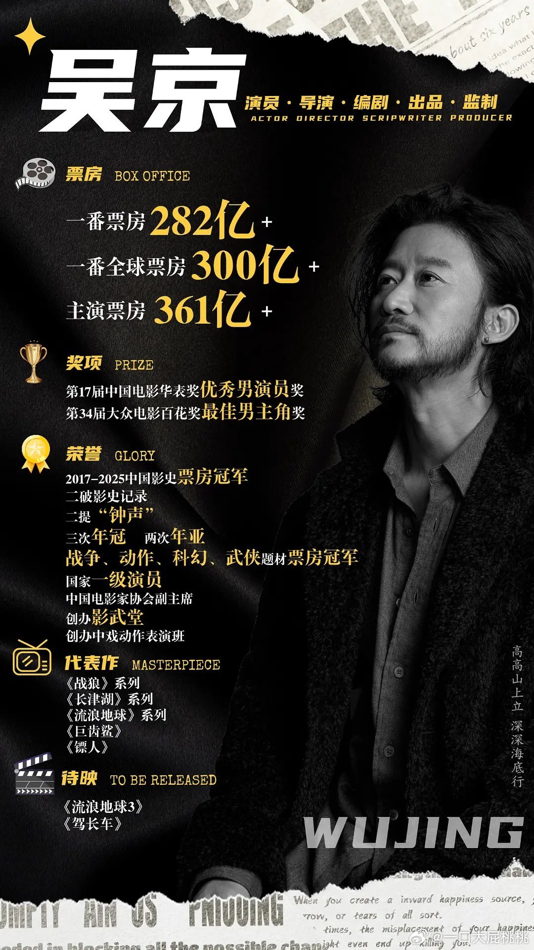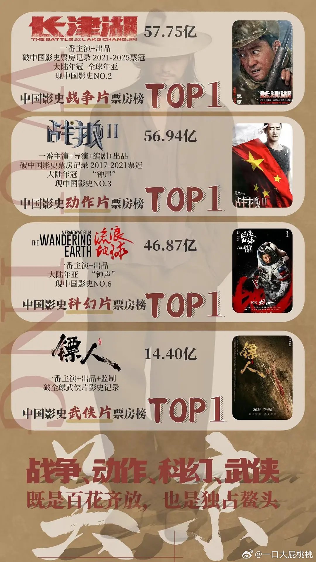 吴京最新实绩图~ 四种题材独占鳌头,既霸气又自信