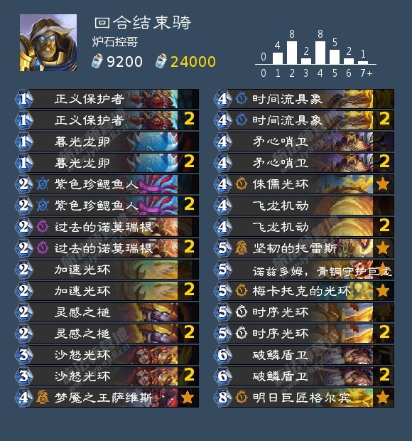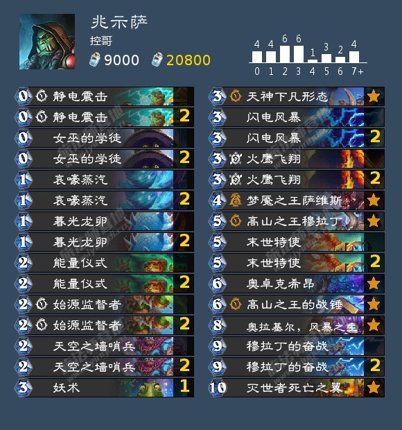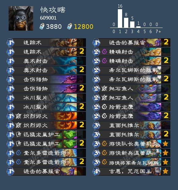 炉石传说 炉石平衡补丁过去3天,在钻石-传说分段,兆示贼以26.2% 的出场率反超法术瞎15.9%,而萨满的热度只剩下10%,越高分段萨满越少。在传说分段,兆示贼的出场率高达40%,按照这个热度,贼要赶超之前的灌注德了,总要有一个巫妖王,因此抓贼的快攻结束骑、快攻猎和龙战回温暖了一点。其他职业有任务法、龙德、控制牧等。