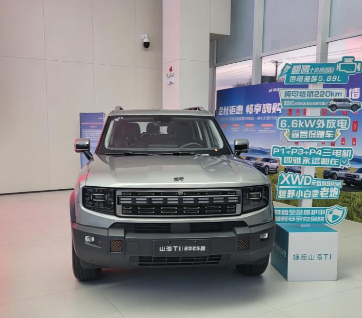 捷途山海T1实车一瞅,直接相中 开捷途旅行者都快两年了,闲着没事看了山海T1实车,不得不说,捷途是真懂咱喜欢硬派车的心思。 方盒子造型贼正,没有乱七八糟多余设计,线条硬朗利索,前脸大灯配厚重前杠,气场老猛了。宽轮眉加AT胎,一看就是能豁烂路的主儿。 最得劲的是原厂直接带外挂全尺寸备胎、车顶行李架,不用自己费劲改装,省心老了。离地间隙也高,周末进山走烂路一点不犯愁。 城里开不别扭,出去玩越野也够用,作为老车主,这外观我是真没啥可挑的,太对胃口。【来自懂车帝车友圈】